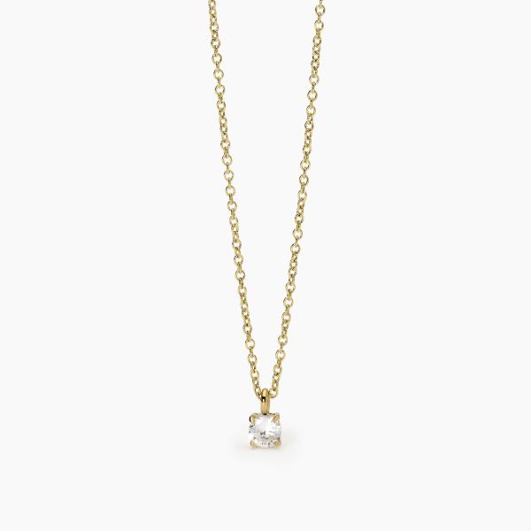 Girocollo in acciaio 316L in PVD giallo con catena forzatina 1.5 mm e zircone bianco Ø 5 mm, lunghezza regolabile da 40 a 45 cm