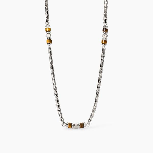 Collana in acciaio 316L con catena veneta 2.5 mm, sfere 3.7x4 mm e dischi di occhio di tigre 2.5xØ4 mm, lunghezza 50 cm