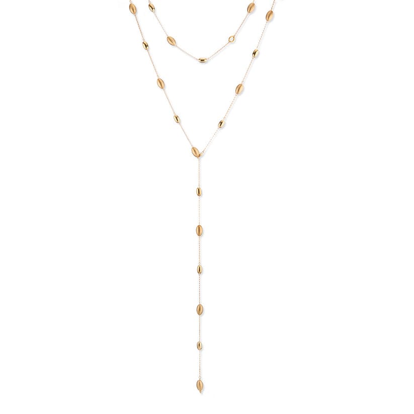Collana a catena lunga 120cm, con ovaline alternate lisce e satinate, creata con l'innovativo trattamento galvanico a spessore in Oro 24kt, che conferisce un'eleganza unica a ogni ovalina liscia e satinata. Grazie alle sfere alternate, questa collana risulta essere il perfetto mix tra classe e modernità. Una scelta senza tempo per arricchire il tuo look.