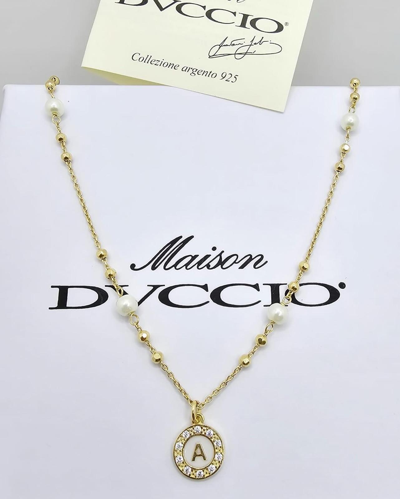 Girocollo in argento 925 con placcatura in oro giallo, iniziale e perle.