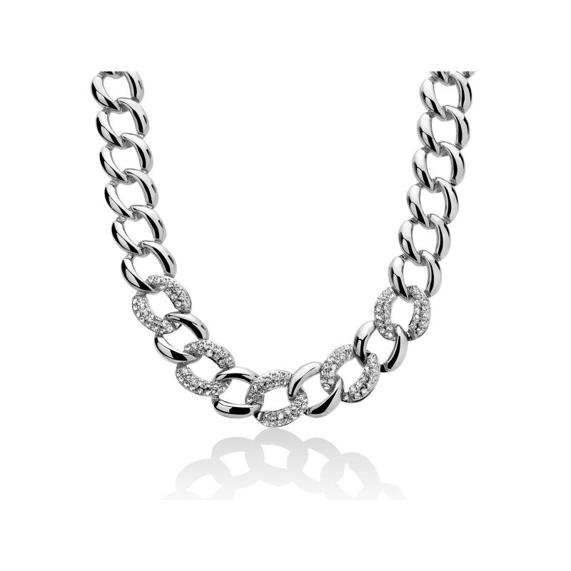 Collana a catena in ottone pvd oro Bianco e zirconi