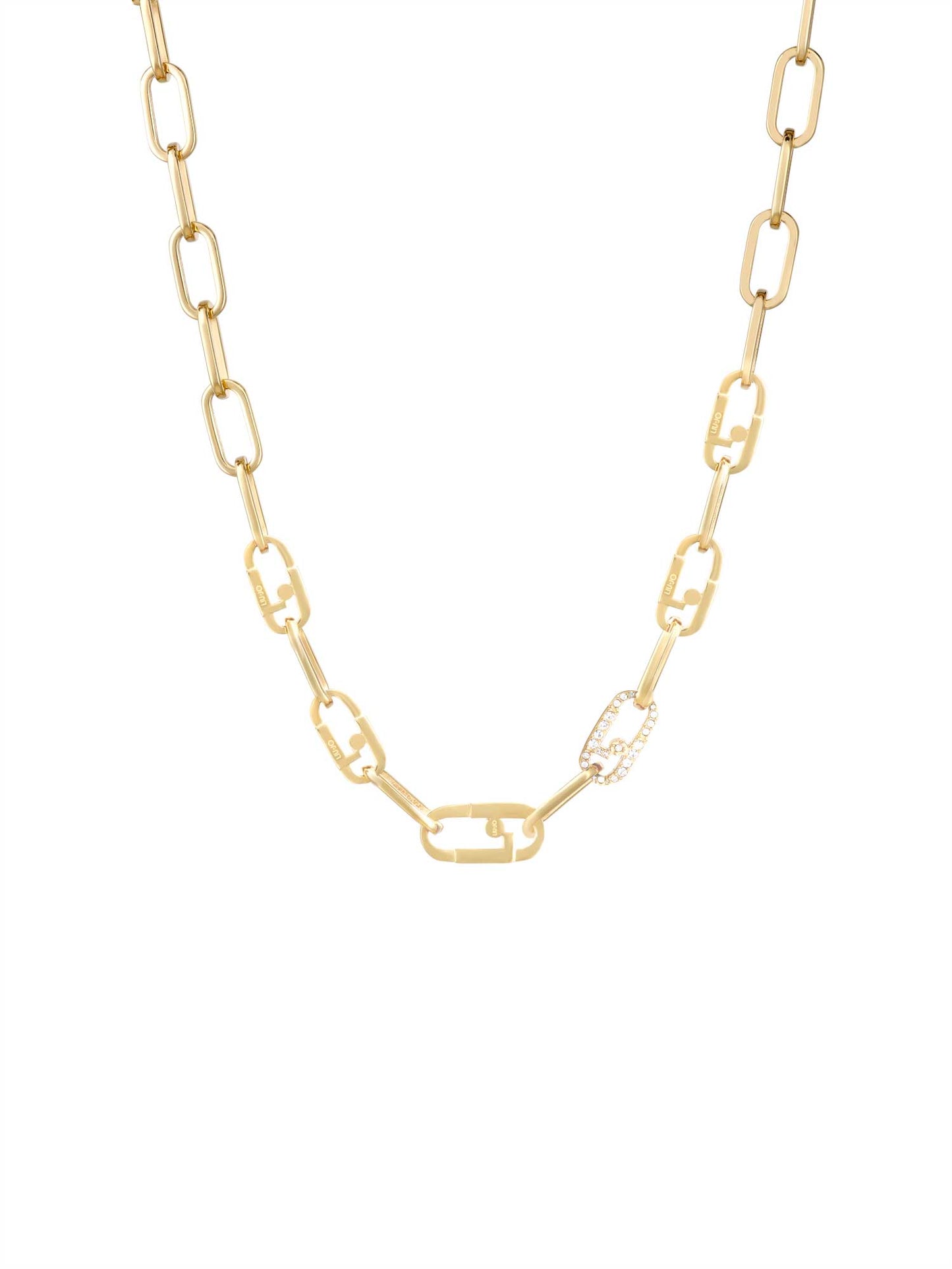 Collana da donna realizzata in acciaio di colore oro impreziosita da zirconi. Misura: 40cm+ 5cm.