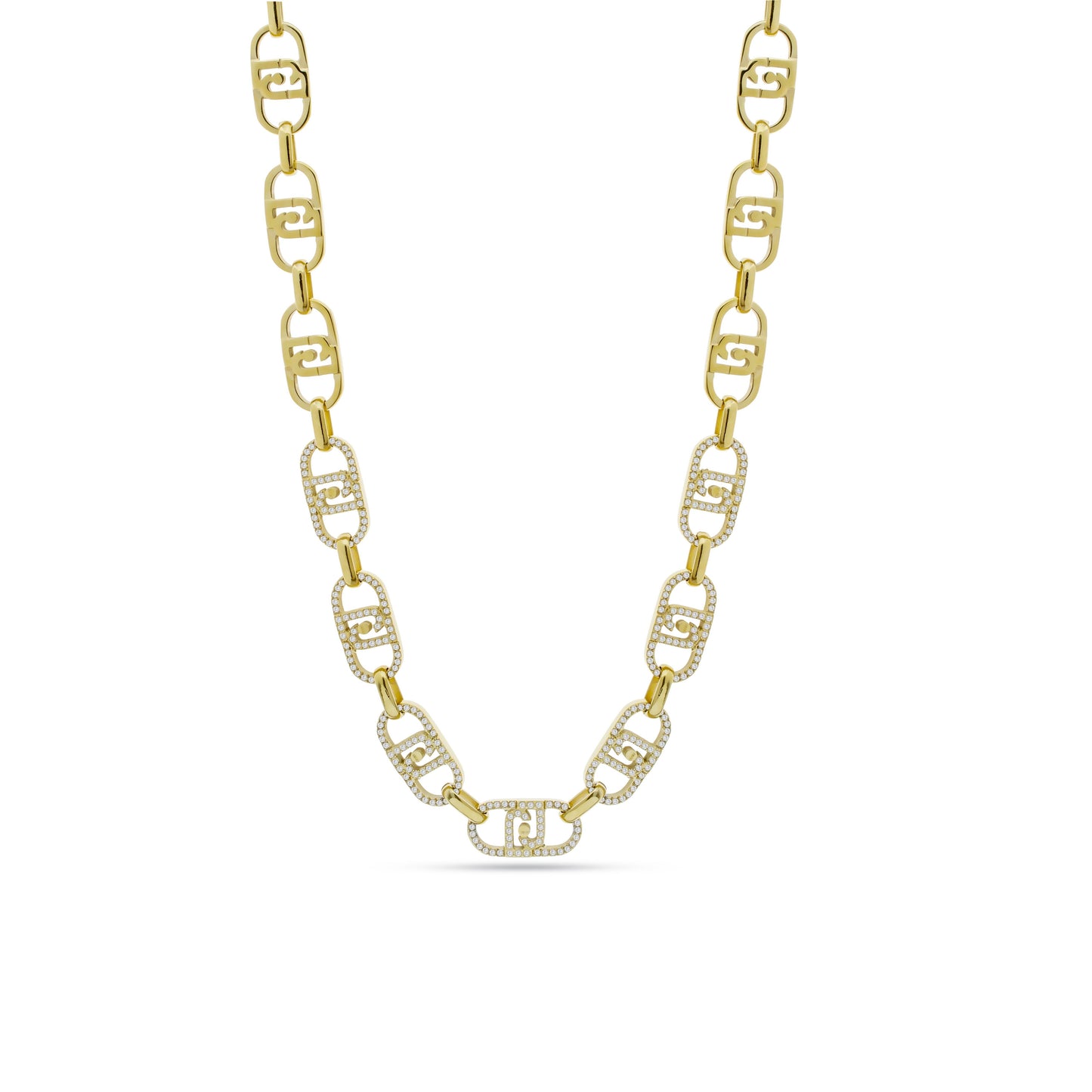 Collana da donna di Liu-Jo della collezione Fashion in acciaio inossidabile di colore oro con pietre bianche. Le dimensioni sono: 45 CM.