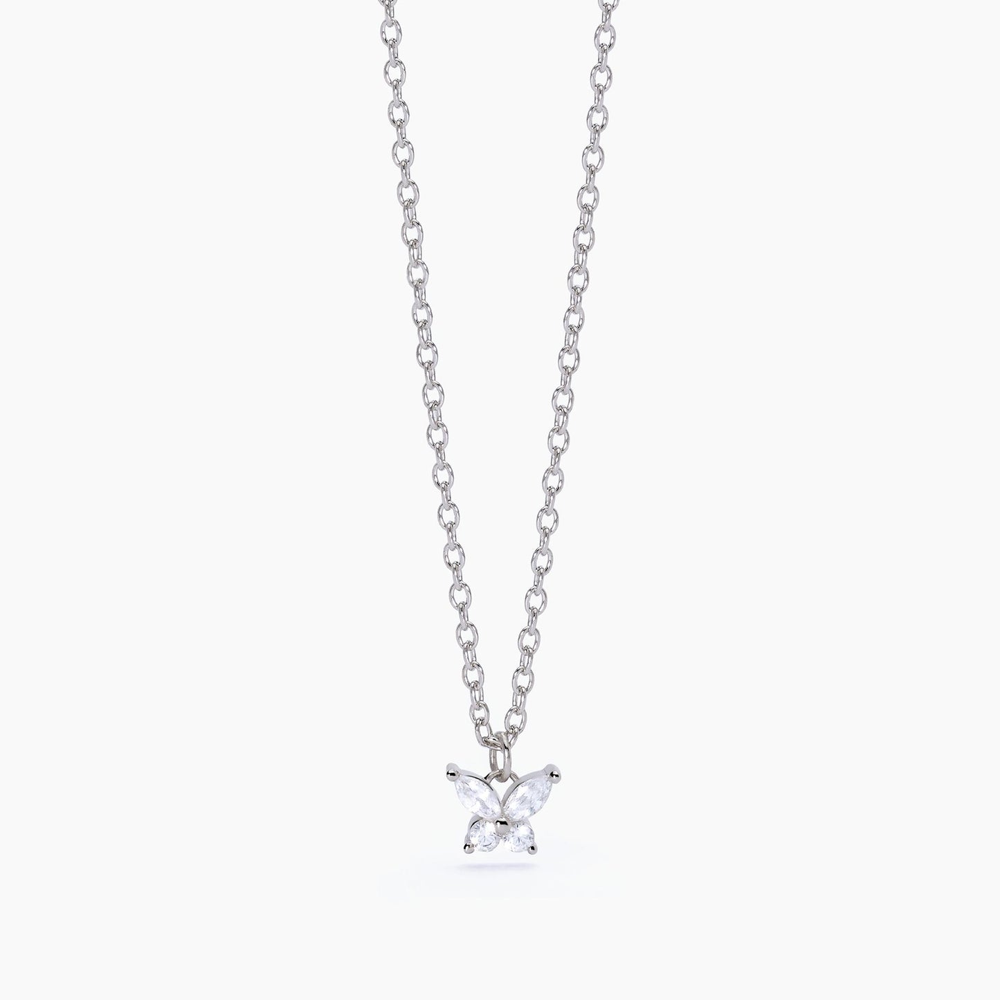 Girocollo da donna in argento rodiato con catena forzatina e zirconi bianchi taglio marquise.