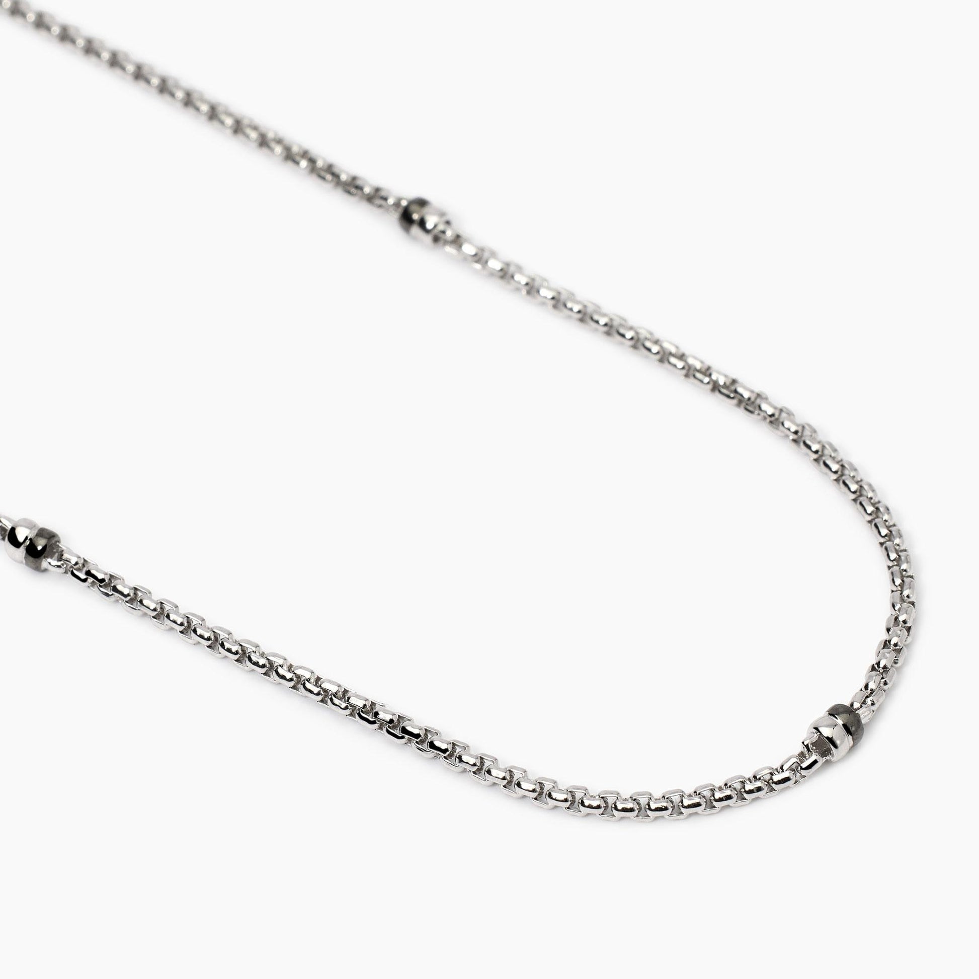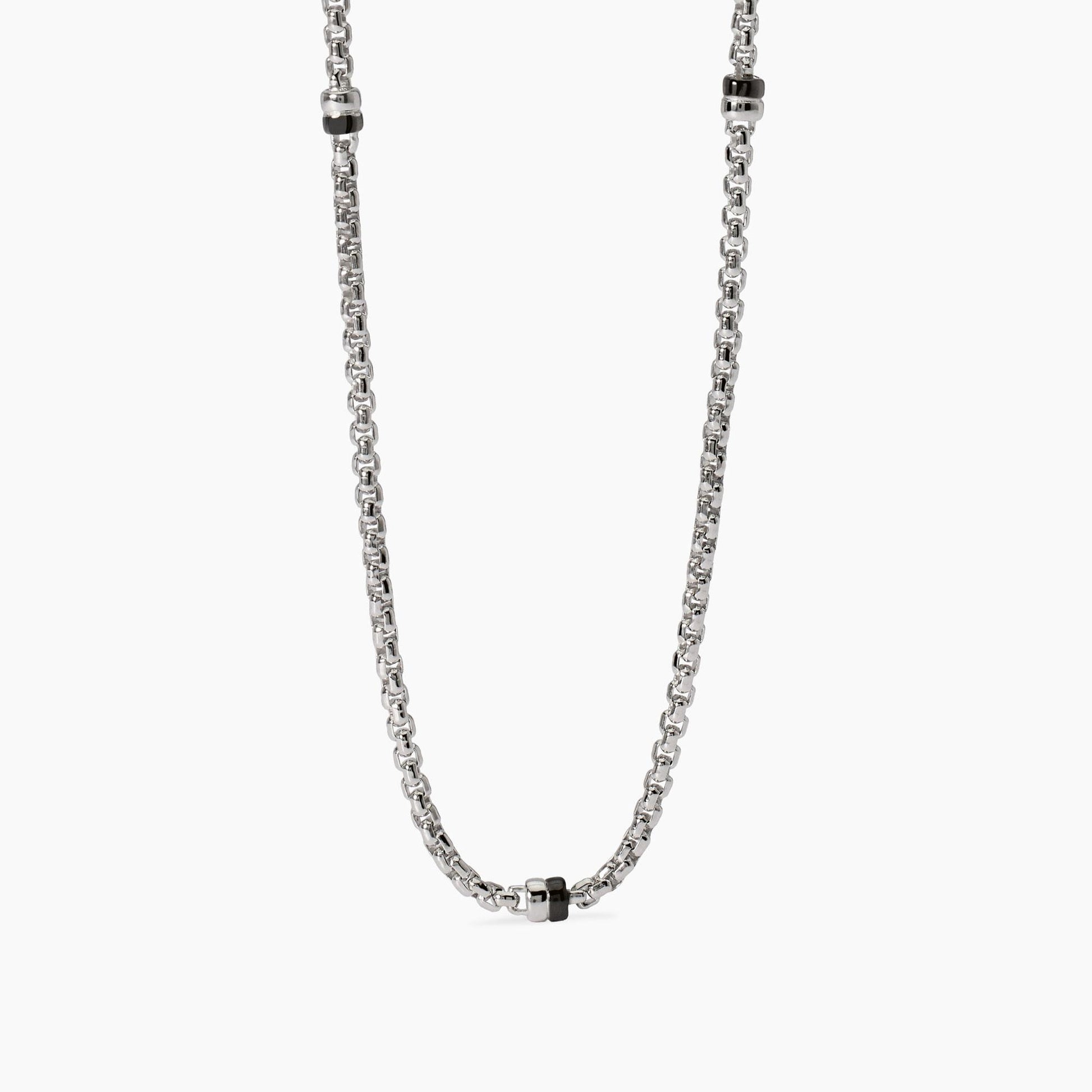 Collana in argento rodiato con catena veneta ed elementi bruniti.