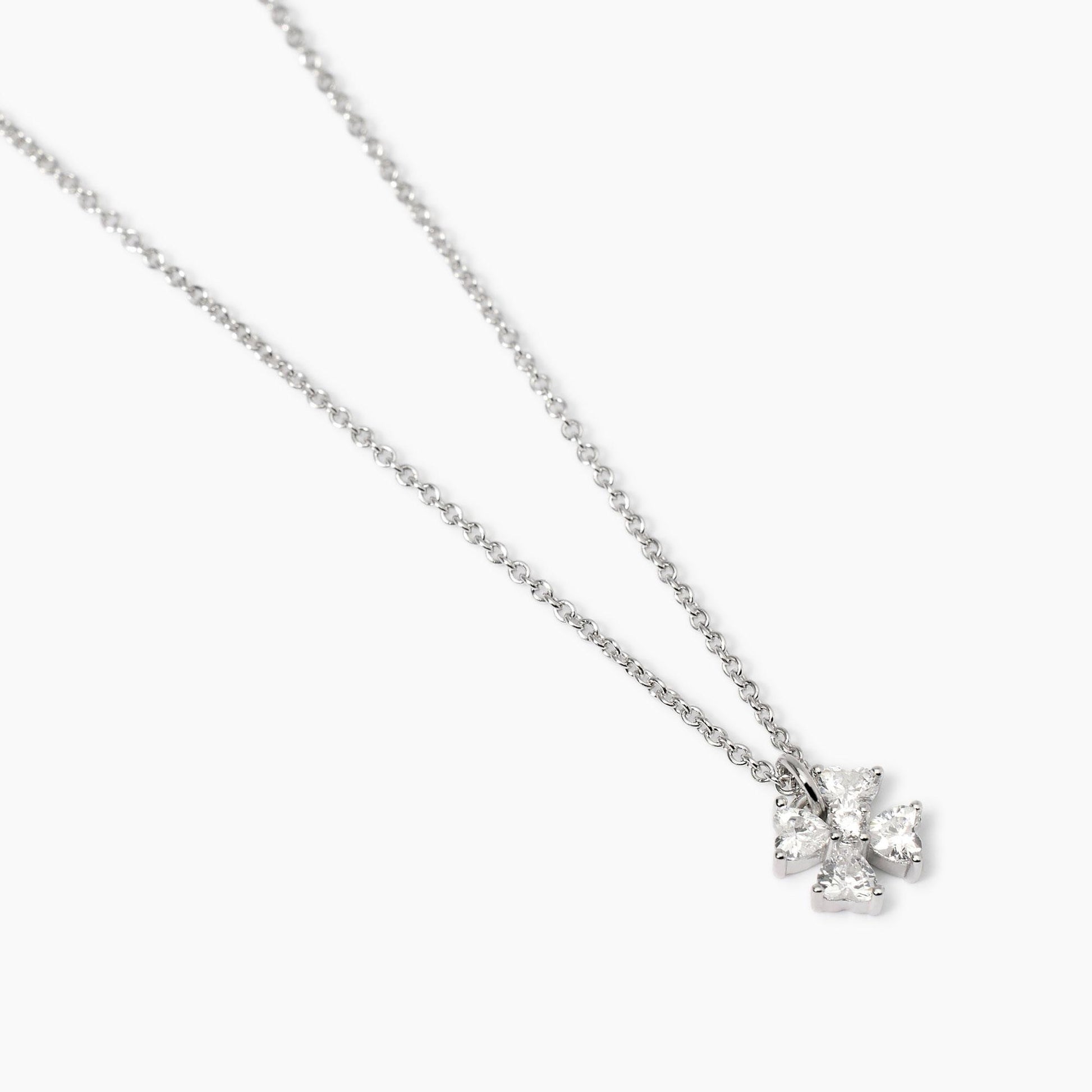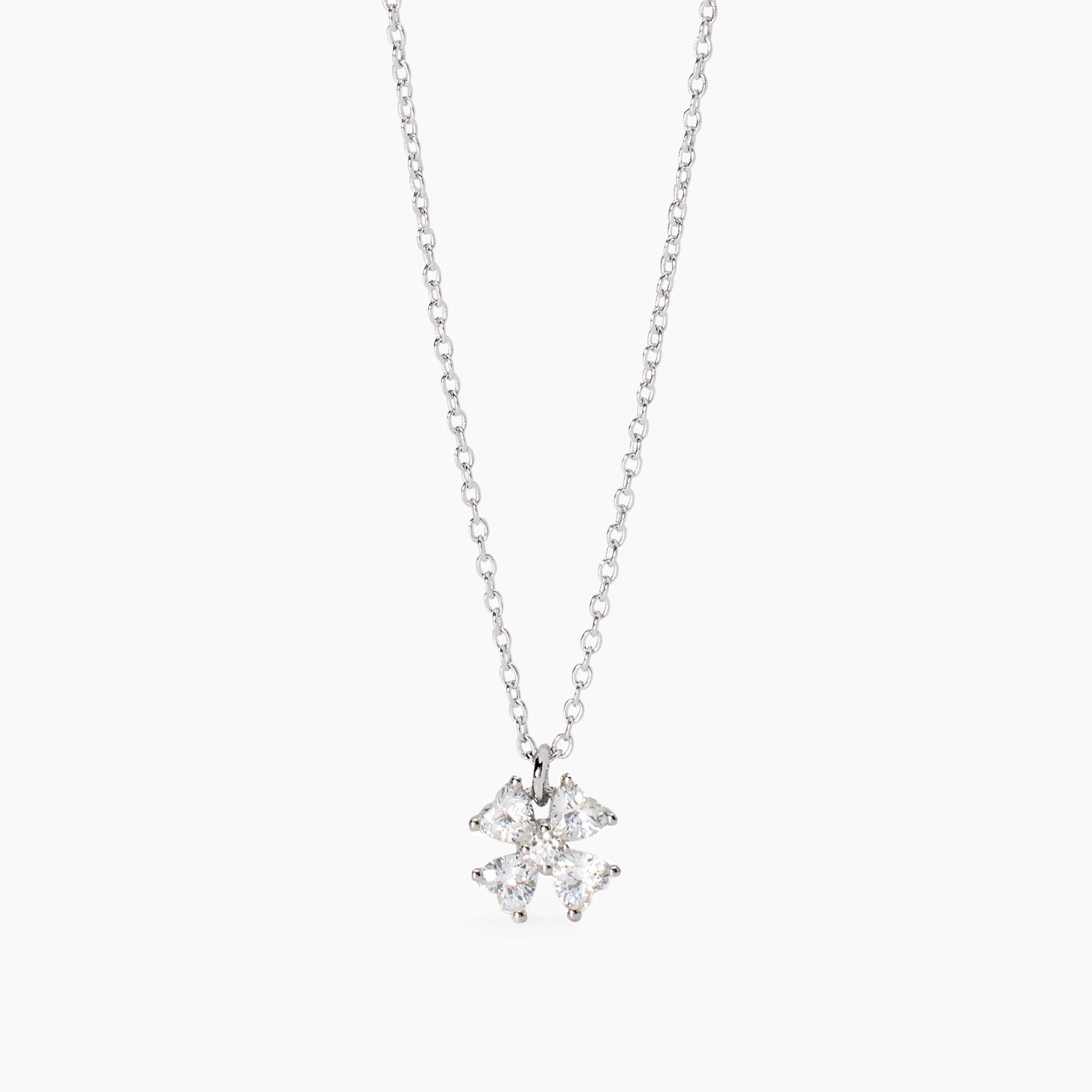 Girocollo in argento con catena rolò e ciondolo quadrifoglio in zirconi bianchi taglio cuore.
