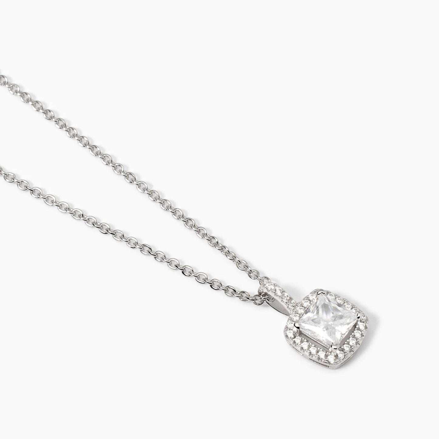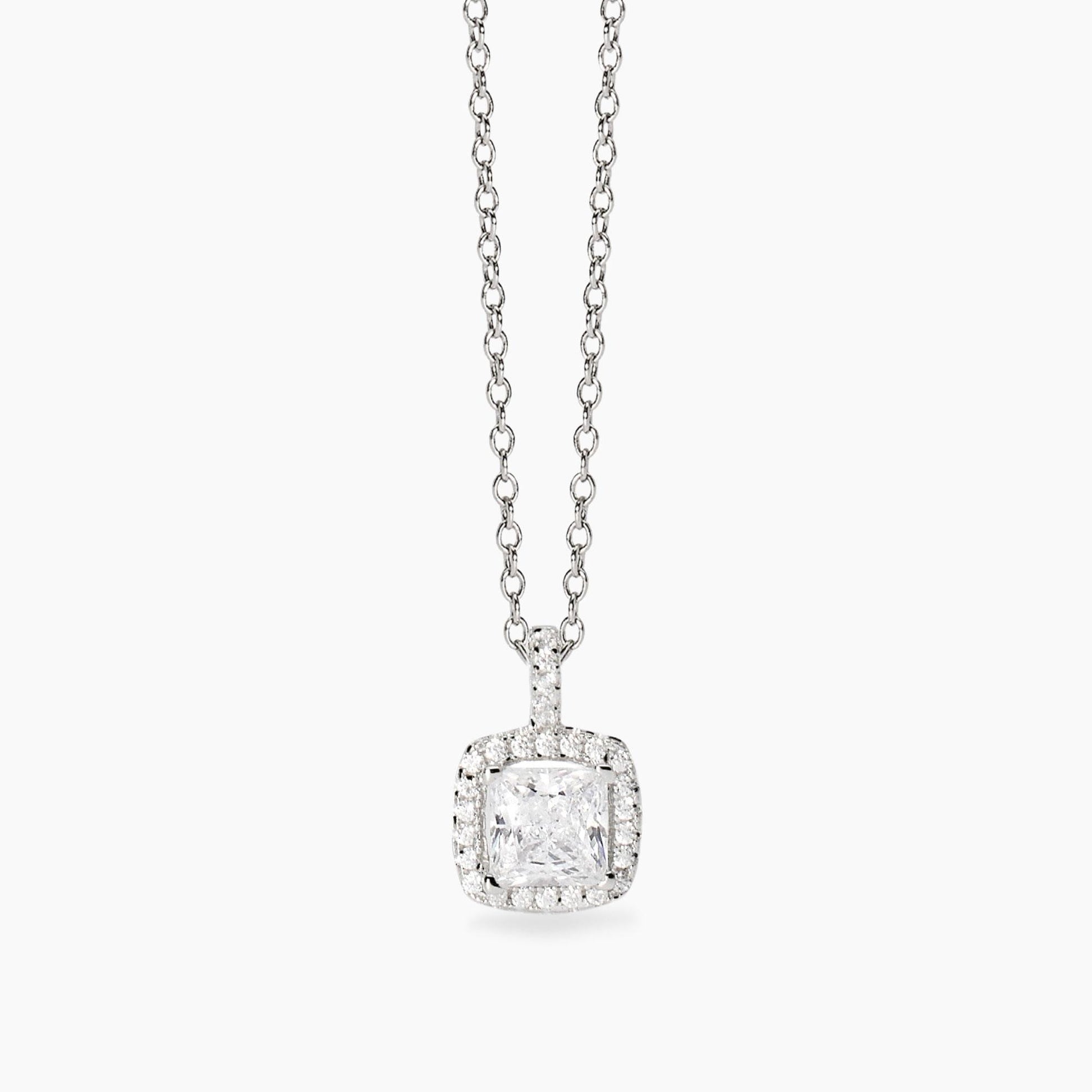 Girocollo in argento con catena rolò con ciondolo in zirconi taglio princess.