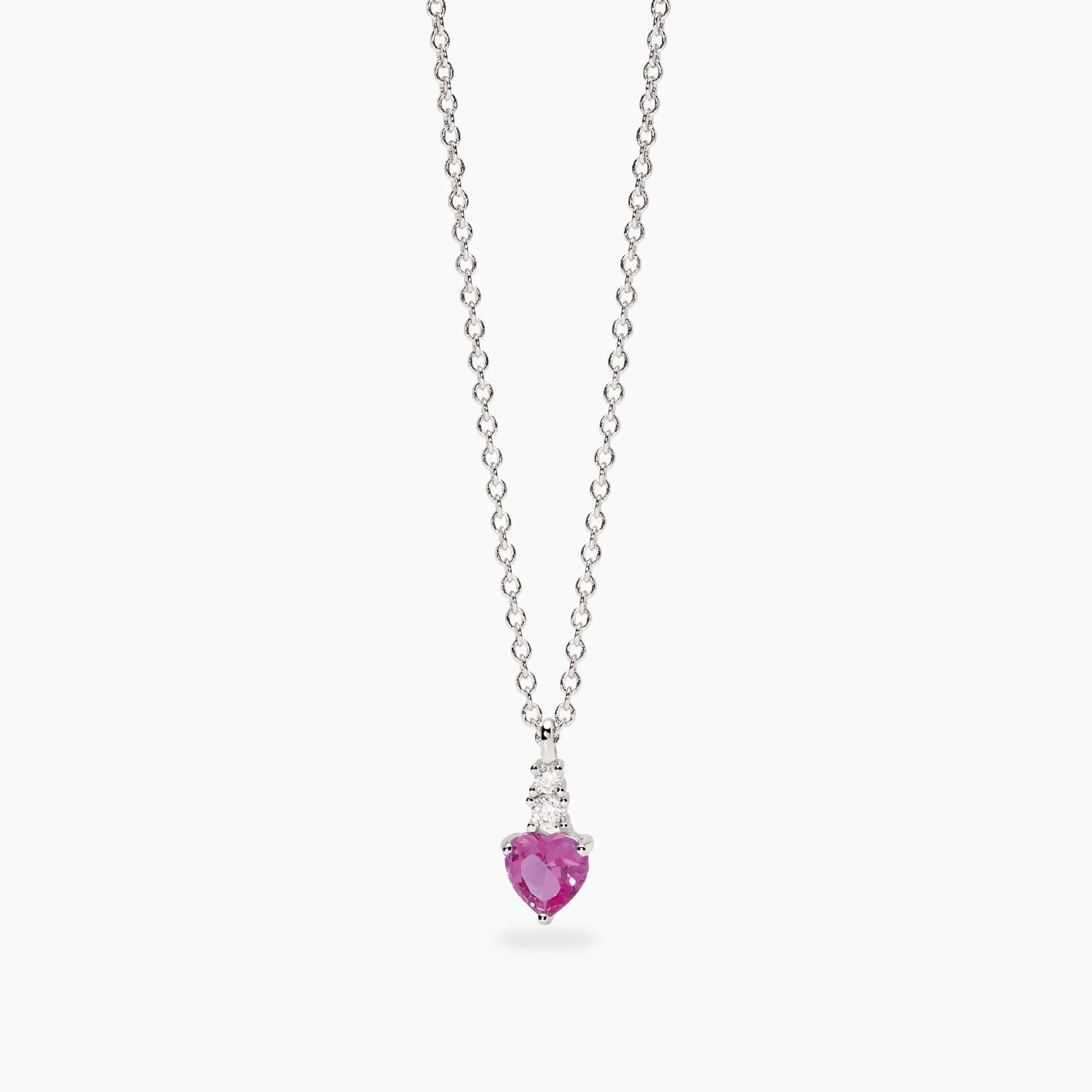 Girocollo regolabile con catena rolò in argento rodiato e pendente con zirconi cuore in corindone rosa sintetico.
