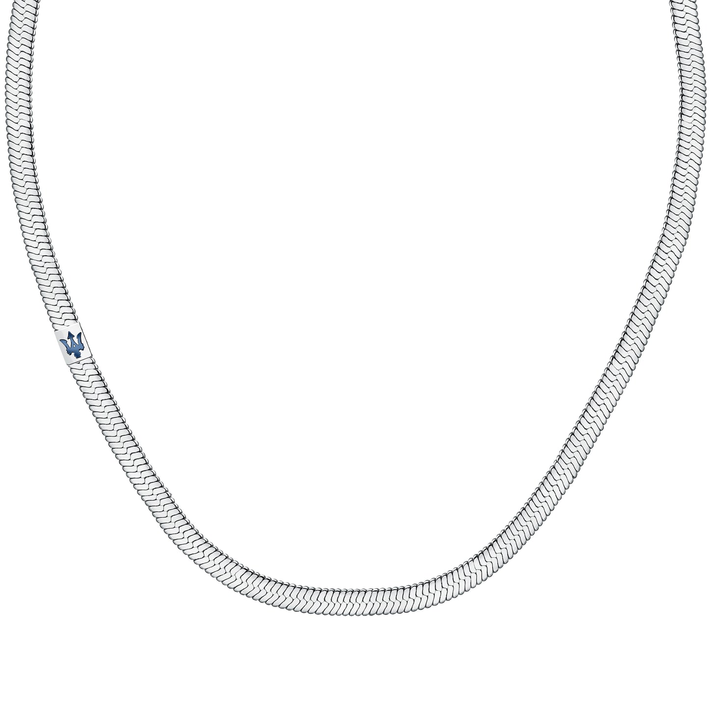 Collana in acciaio modello snake con tridente blu. Lunghezza 55 cm.