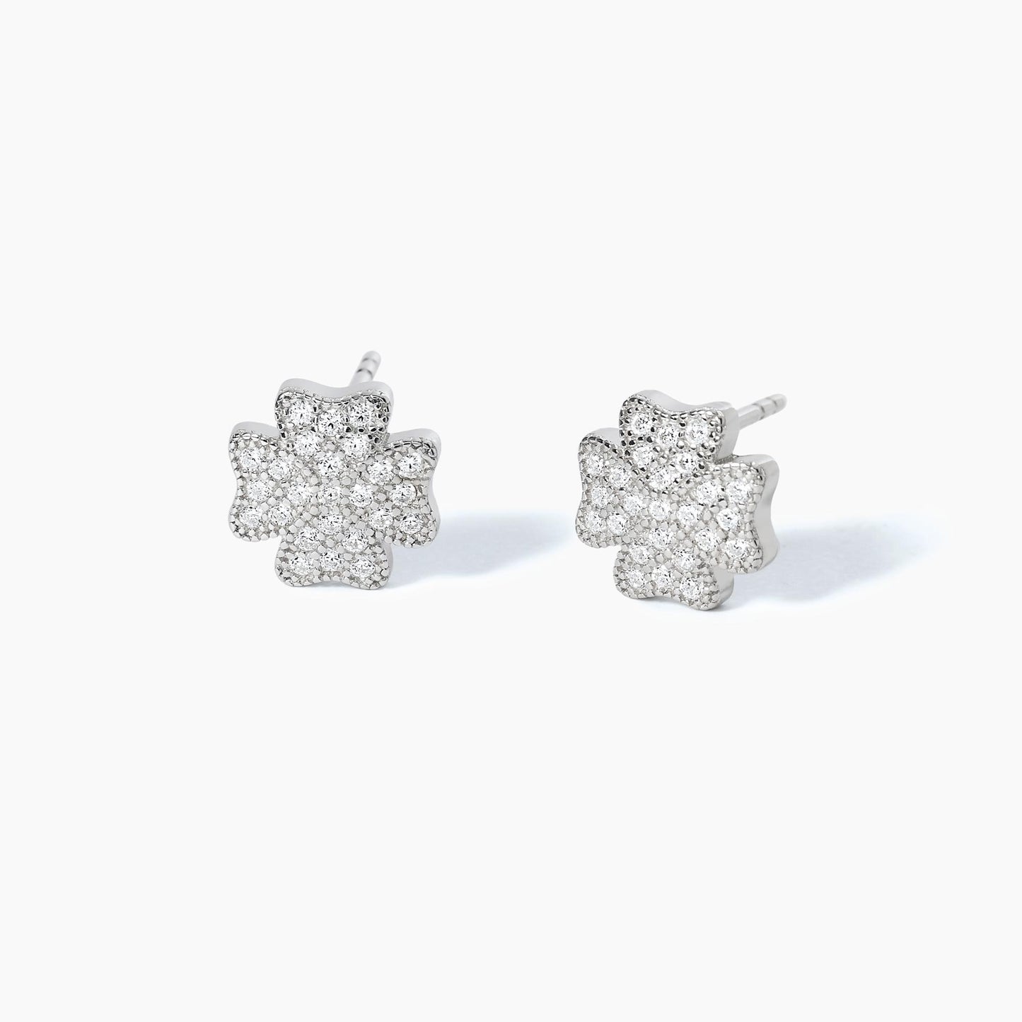 Orecchini a lobo in argento a forma di quadrifoglio in pavé di zirconi.
