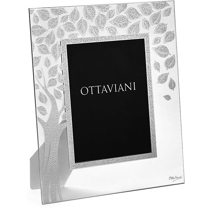 Portafoto "Albero della vita" realizzato in cristallo con foglie di colore argento.