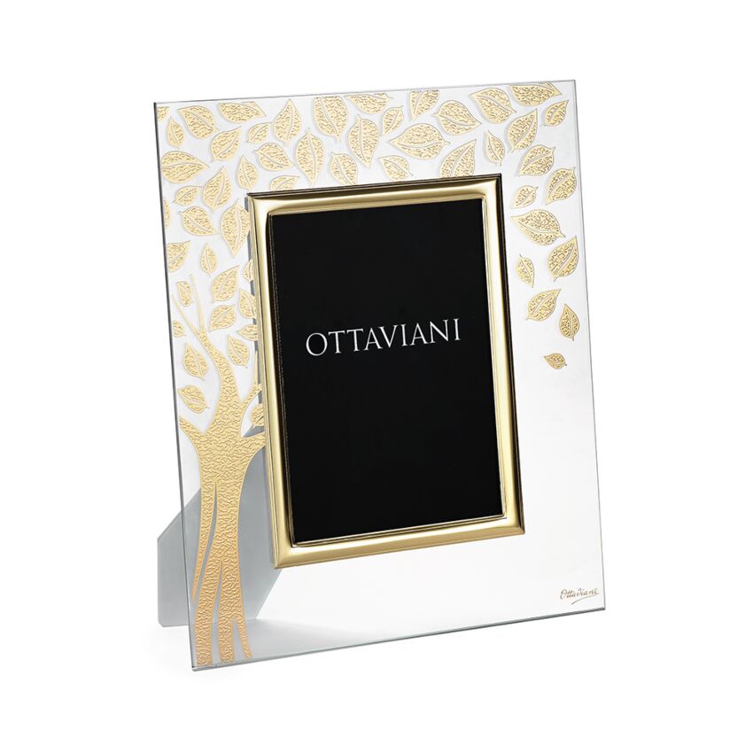 Portafoto "Albero della vita" realizzato in cristallo con foglie di colore oro.
