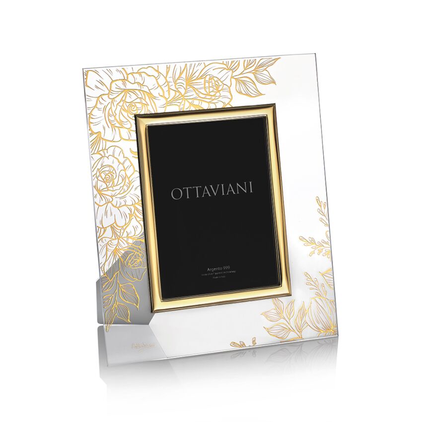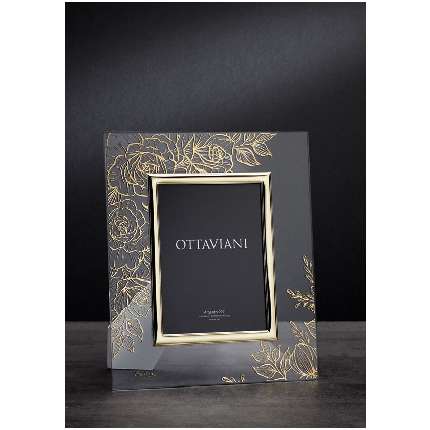 Portafoto "Rose" realizzato in cristallo con foglie di colore oro.