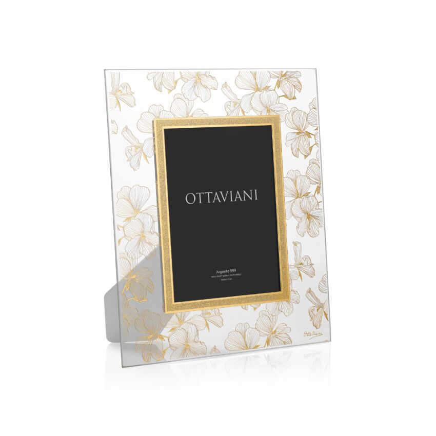 Portafoto cristallo "Fiori di Pesco" dorato.