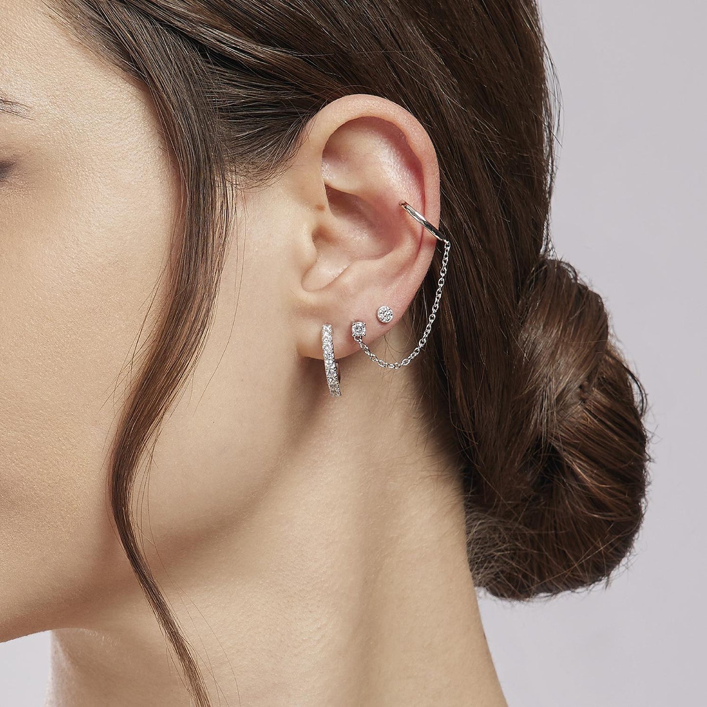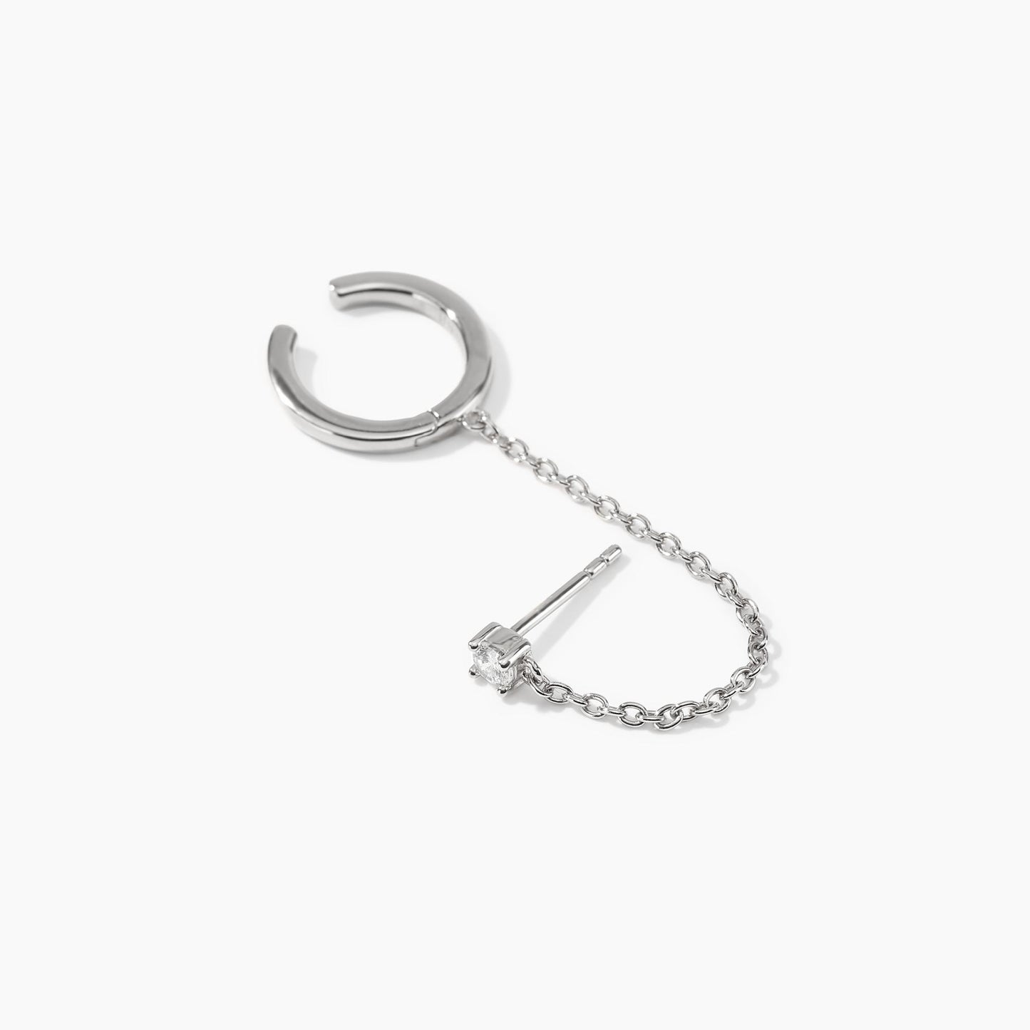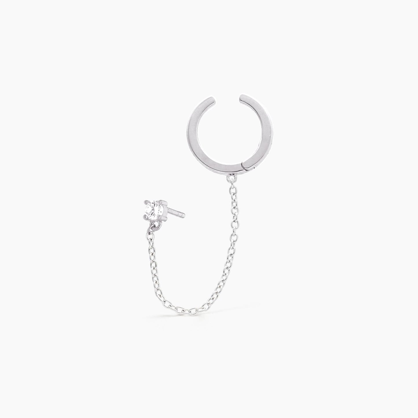 Monorecchino ear cuff a cerchio in argento con catena e punto luce in zircone a lobo.