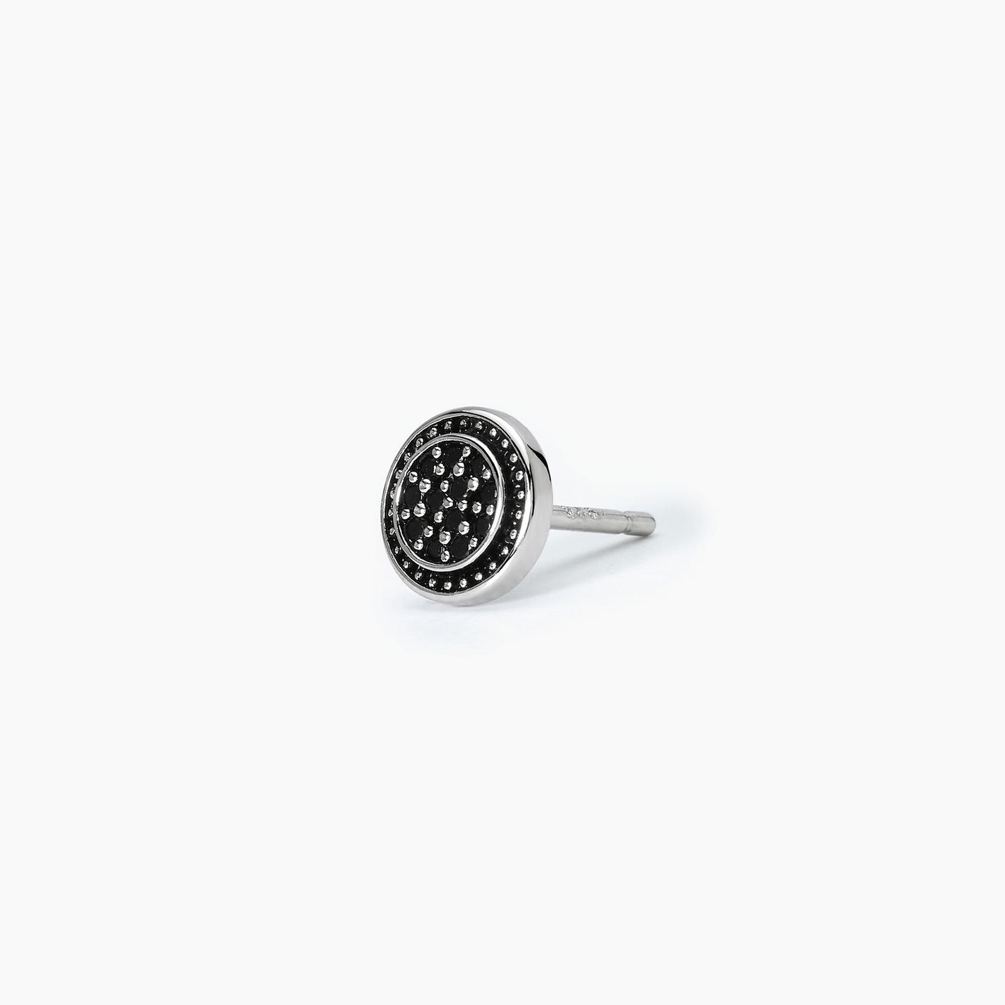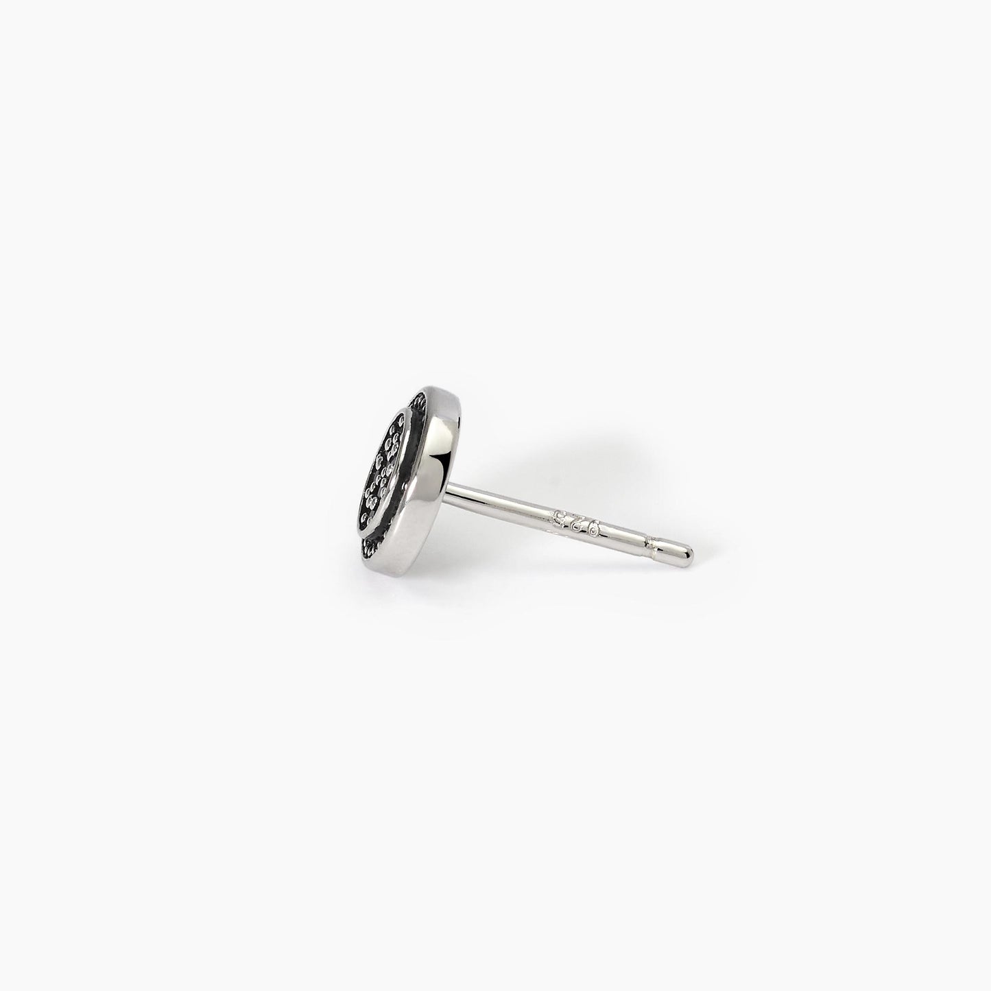 Orecchino da uomo a lobo in argento con borchie e zirconi neri.