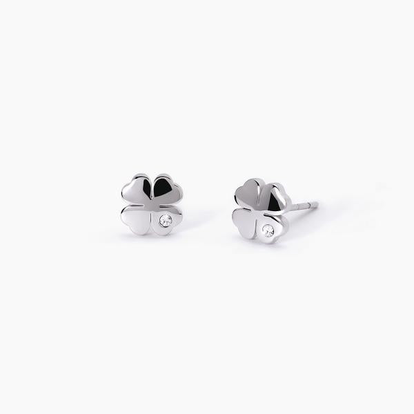 Orecchini in acciaio 316L taglio quadrifoglio con cristalli Ø 1.5 mm