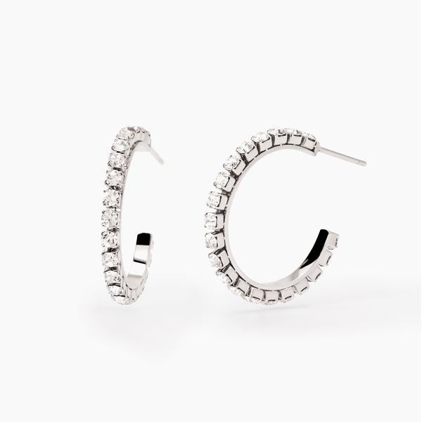Orecchini tennis in acciaio 316L con cristalli Ø 2.5 mm, Ø cerchio esterno 25 mm, interno 20 mm