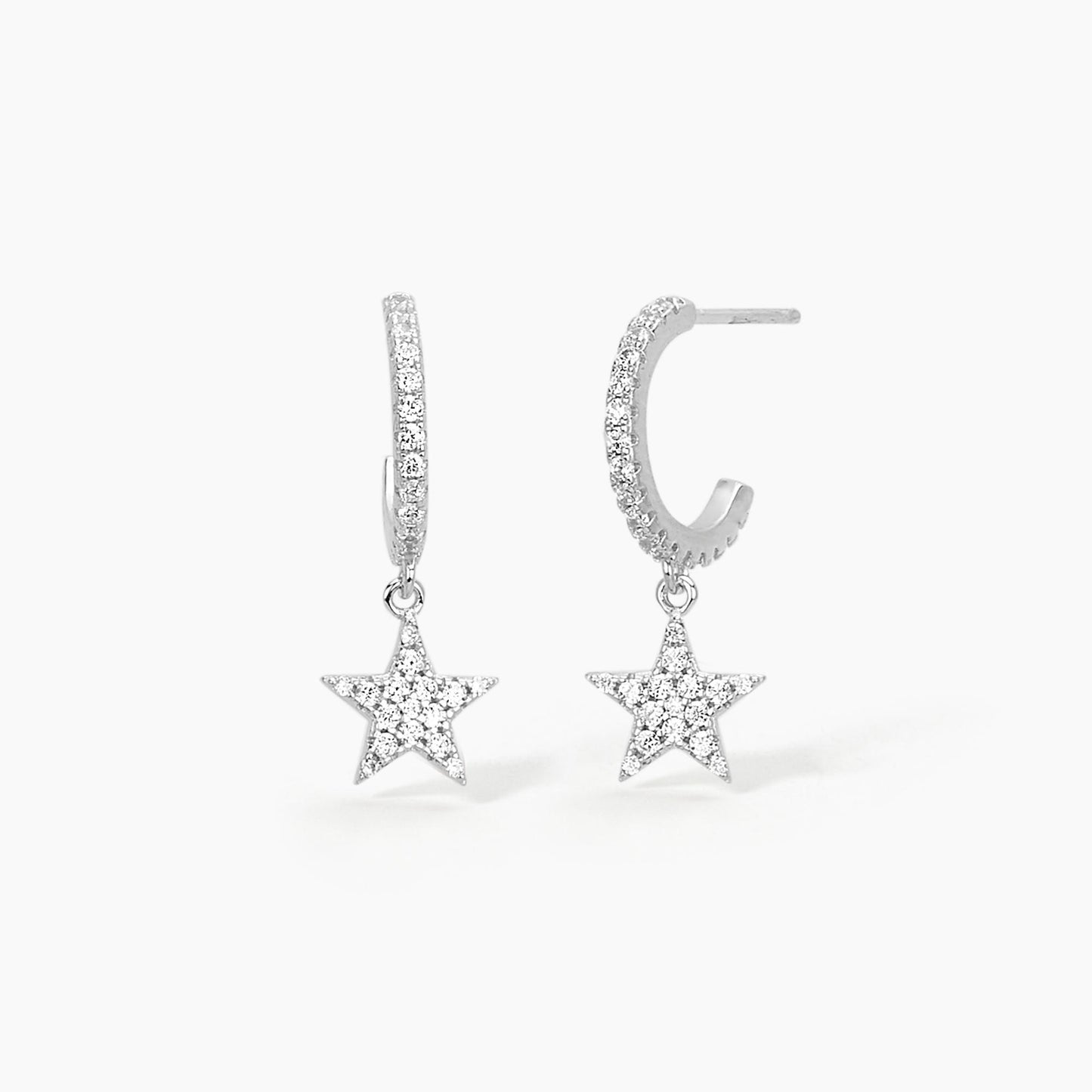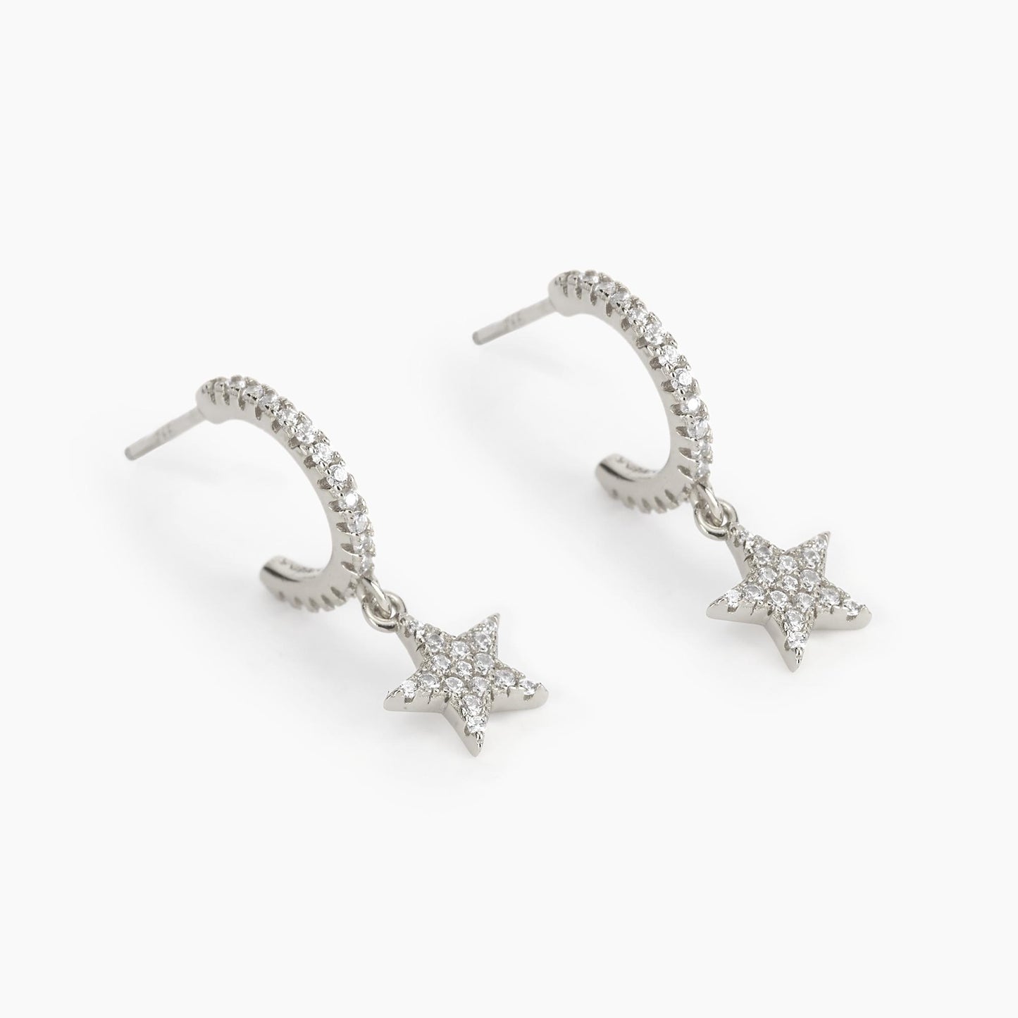 Orecchini a cerchio in argento con pendente a stella in pavé di zirconi.