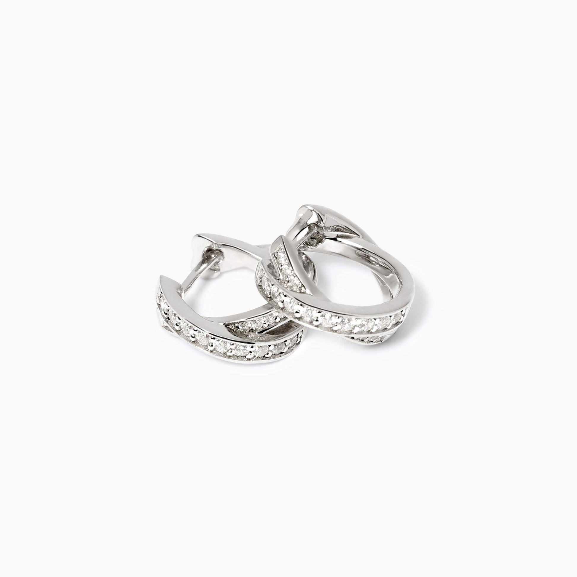 Orecchini intrecciati da donna in argento rodiato con zirconi.