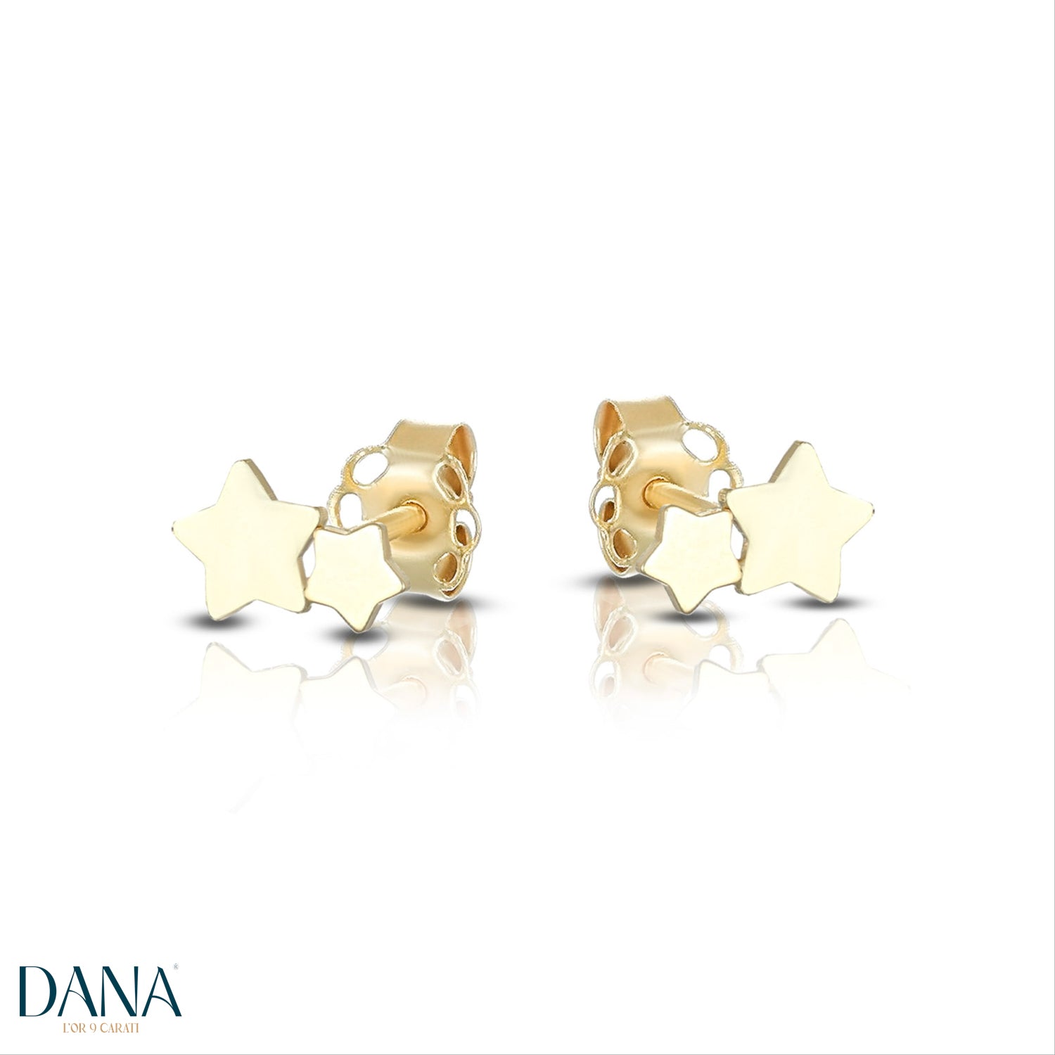 Orecchini in oro giallo 9kt con stelline.