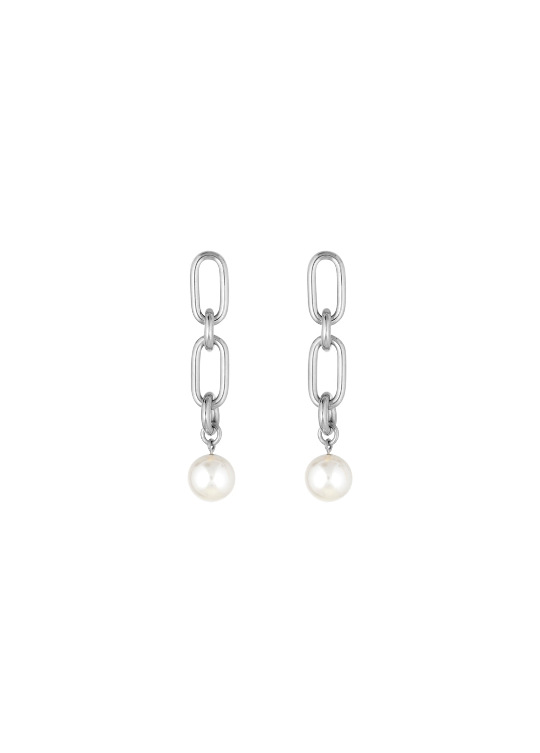 Orecchini da donna realizzati in acciaio di colore argento. Lunghezza: 5 cm
