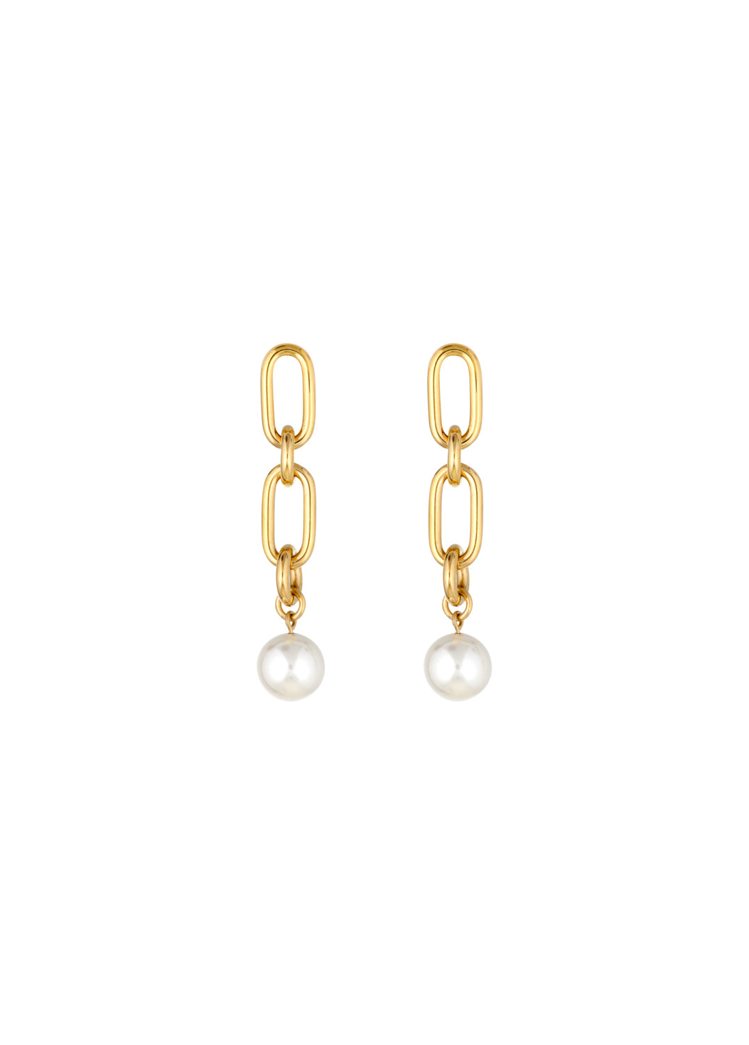 Orecchini da donna realizzati in acciaio di colore oro. Lunghezza: 5 cm