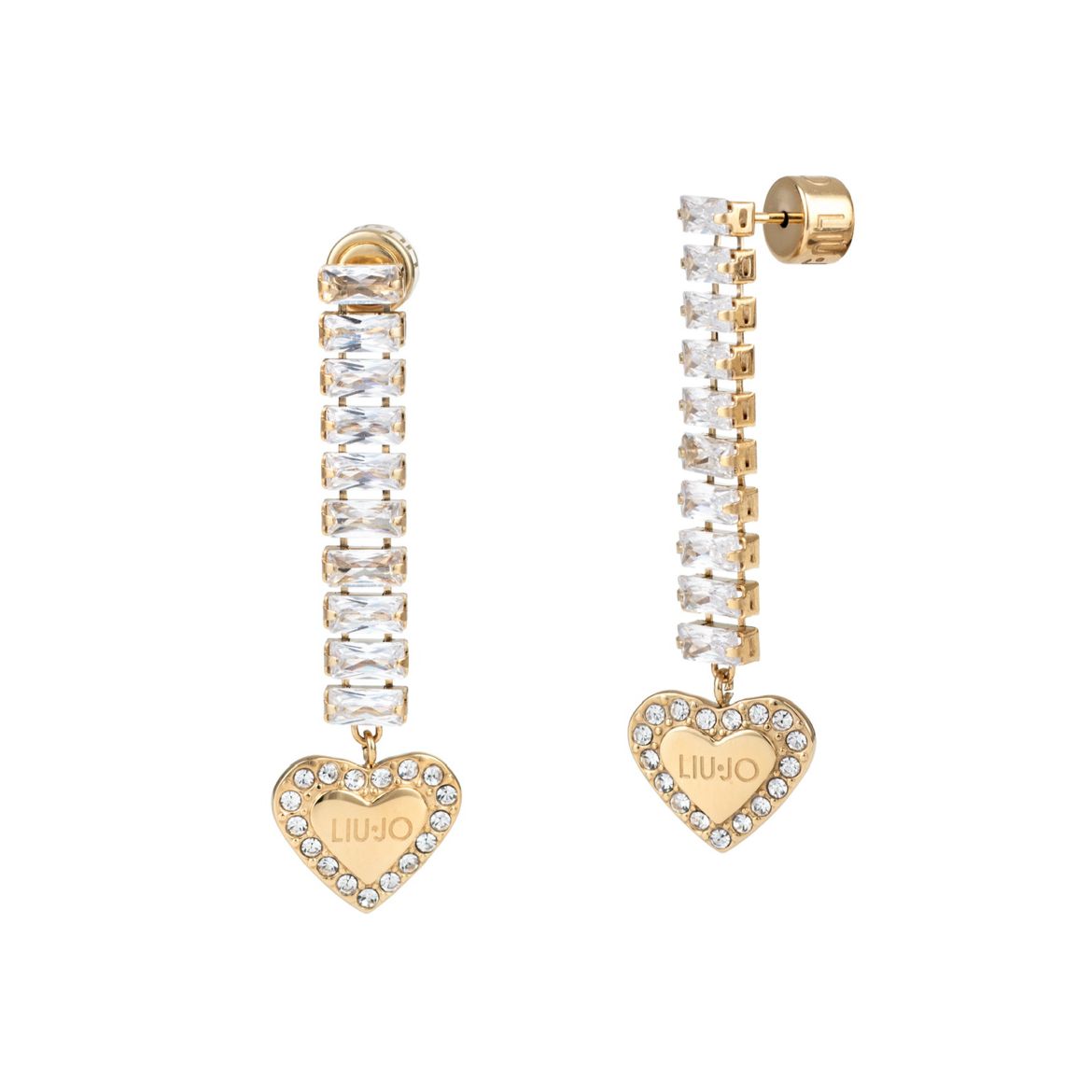Orecchini da donna di Liujo. Gioiello realizzato in acciaio inossidabile di colore oro con zirconi decorativi. Misura gioiello: 3 Cm.