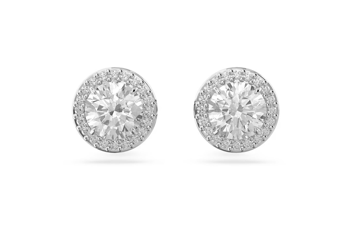 Orecchini punto luce in acciaio con cristalli e zirconi bianchi.