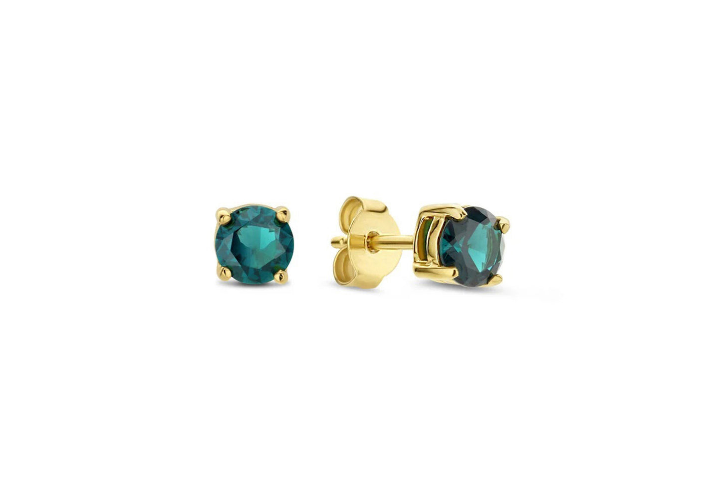 Orecchini punto luce in acciaio laminato con zirconi verdi.