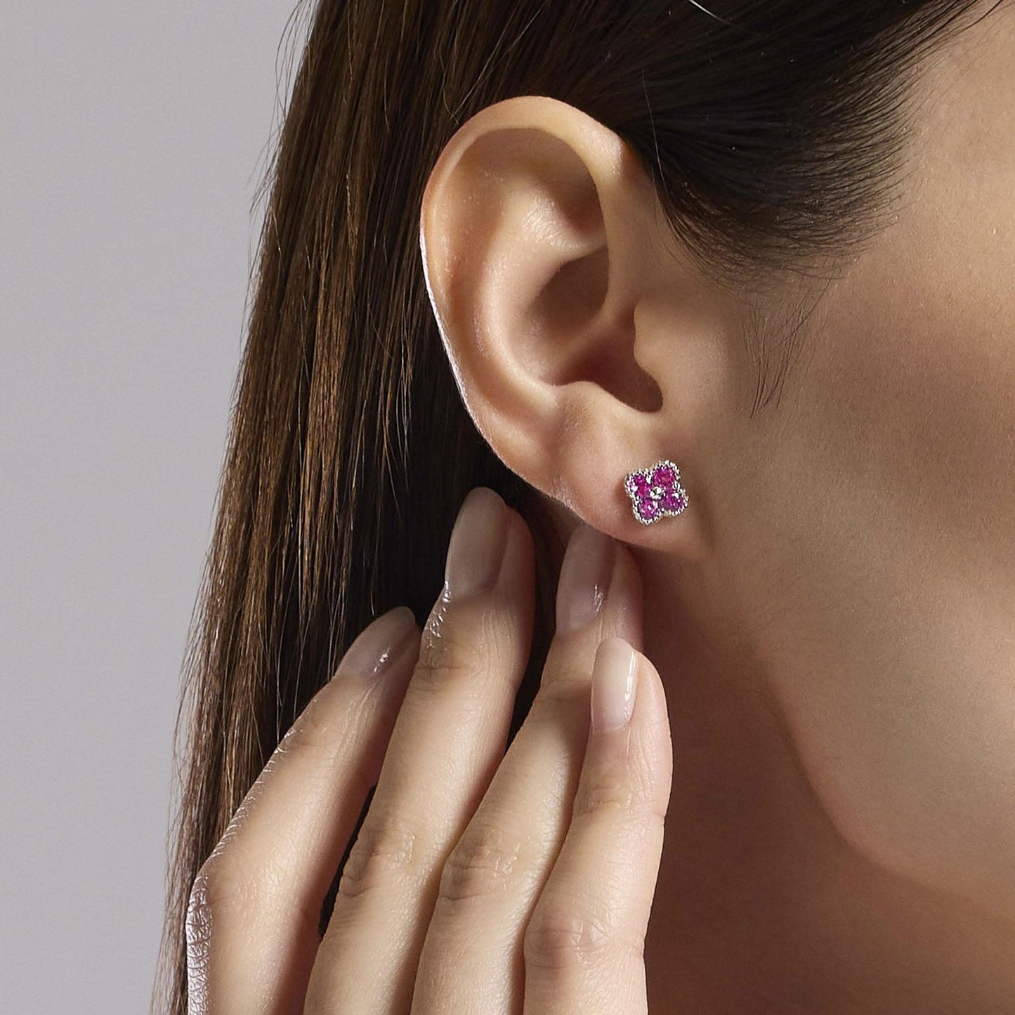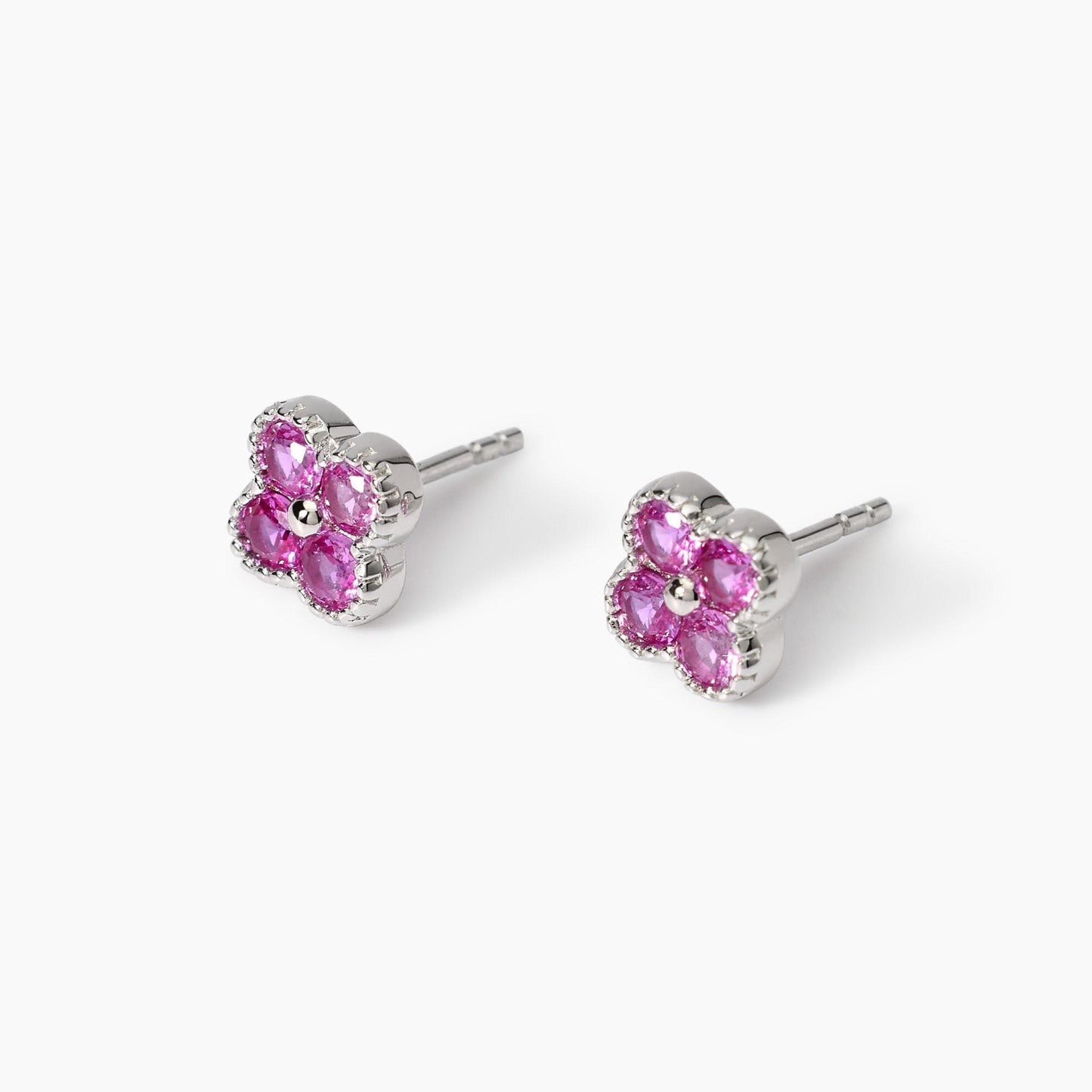 Orecchini in argento con fiore in tormaline rosa sintetiche.