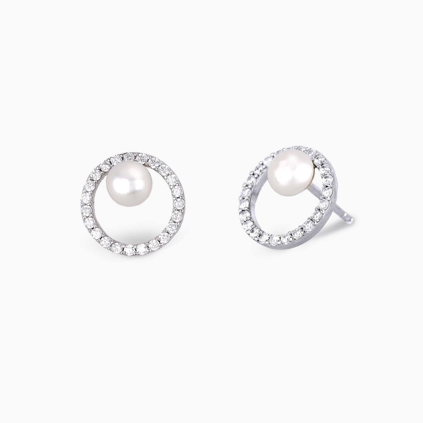 Orecchini a lobo in argento con cerchio in zirconi e perla coltivata.
