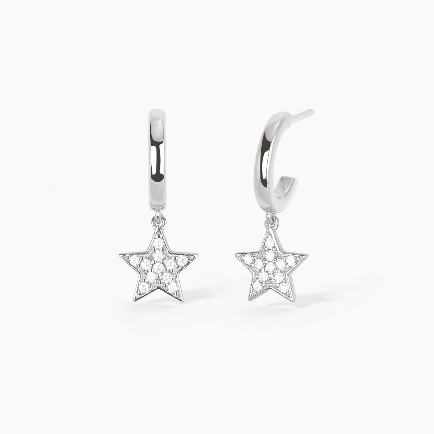 Orecchini a semicerchio in argento con pendente a stella in pavé di zirconi.