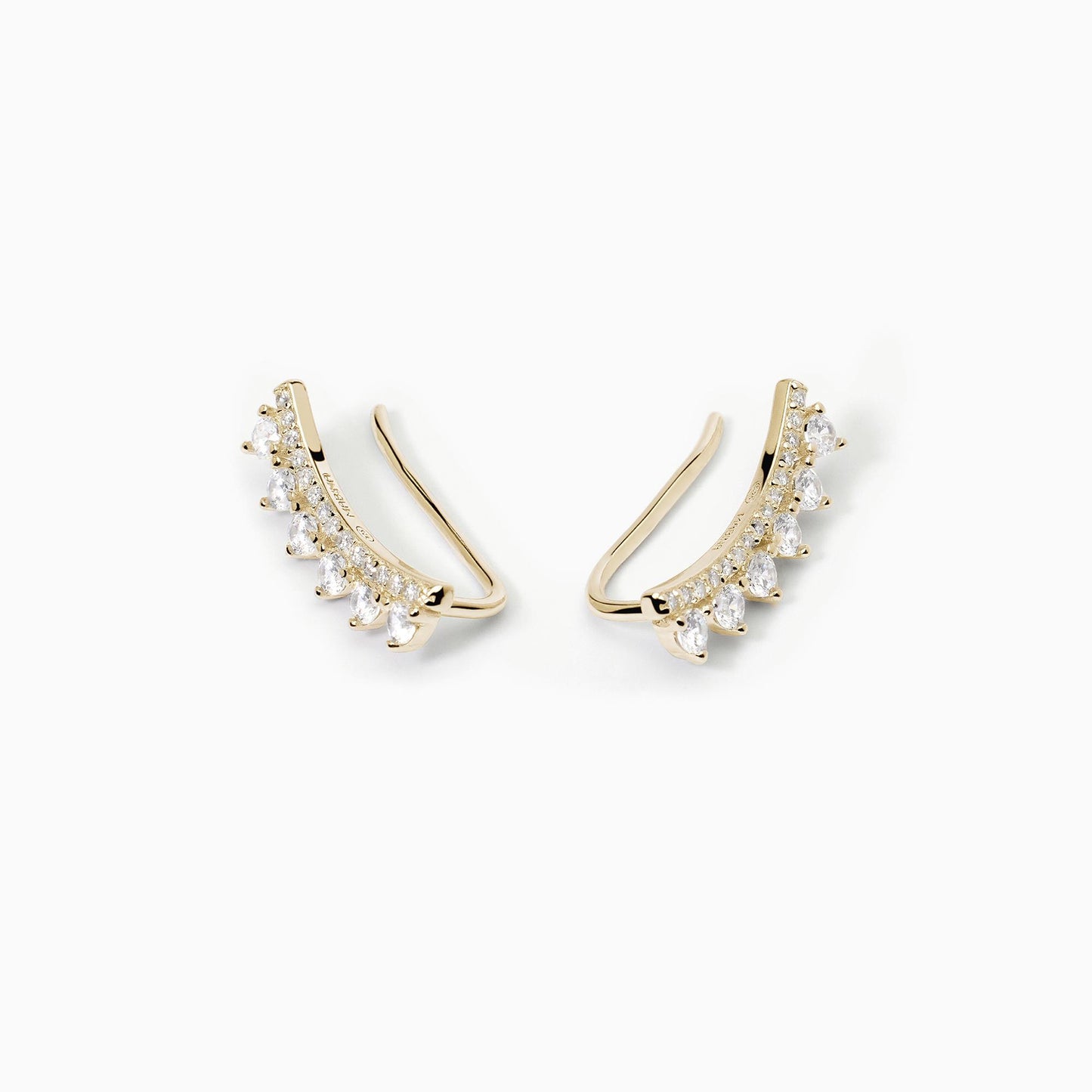 Orecchini da donna a lobo in argento placcato oro 18k con zirconi bianchi.