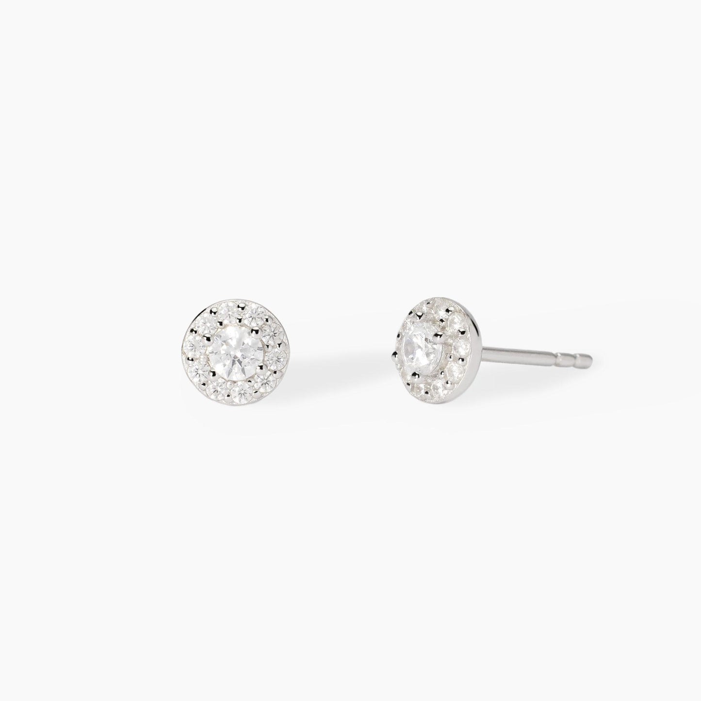 Orecchini a lobo in argento e zirconi bianchi.