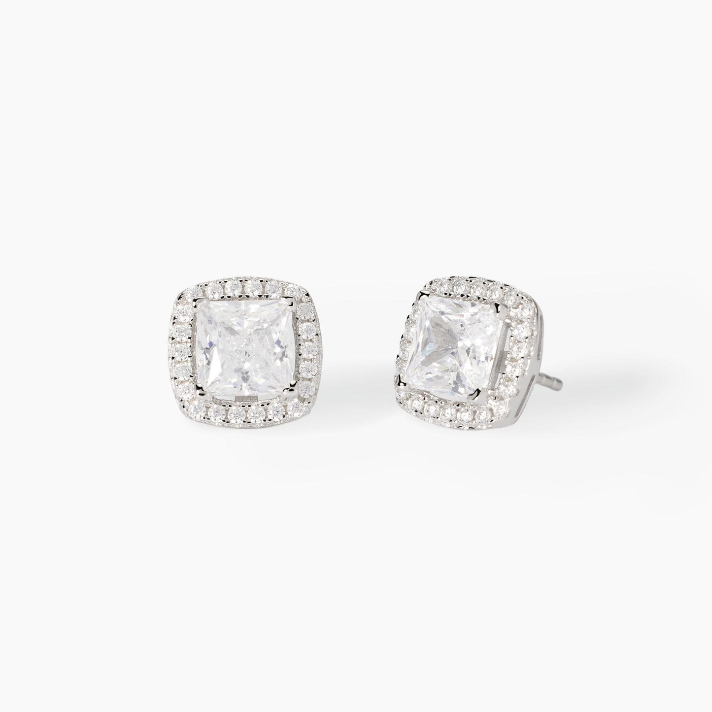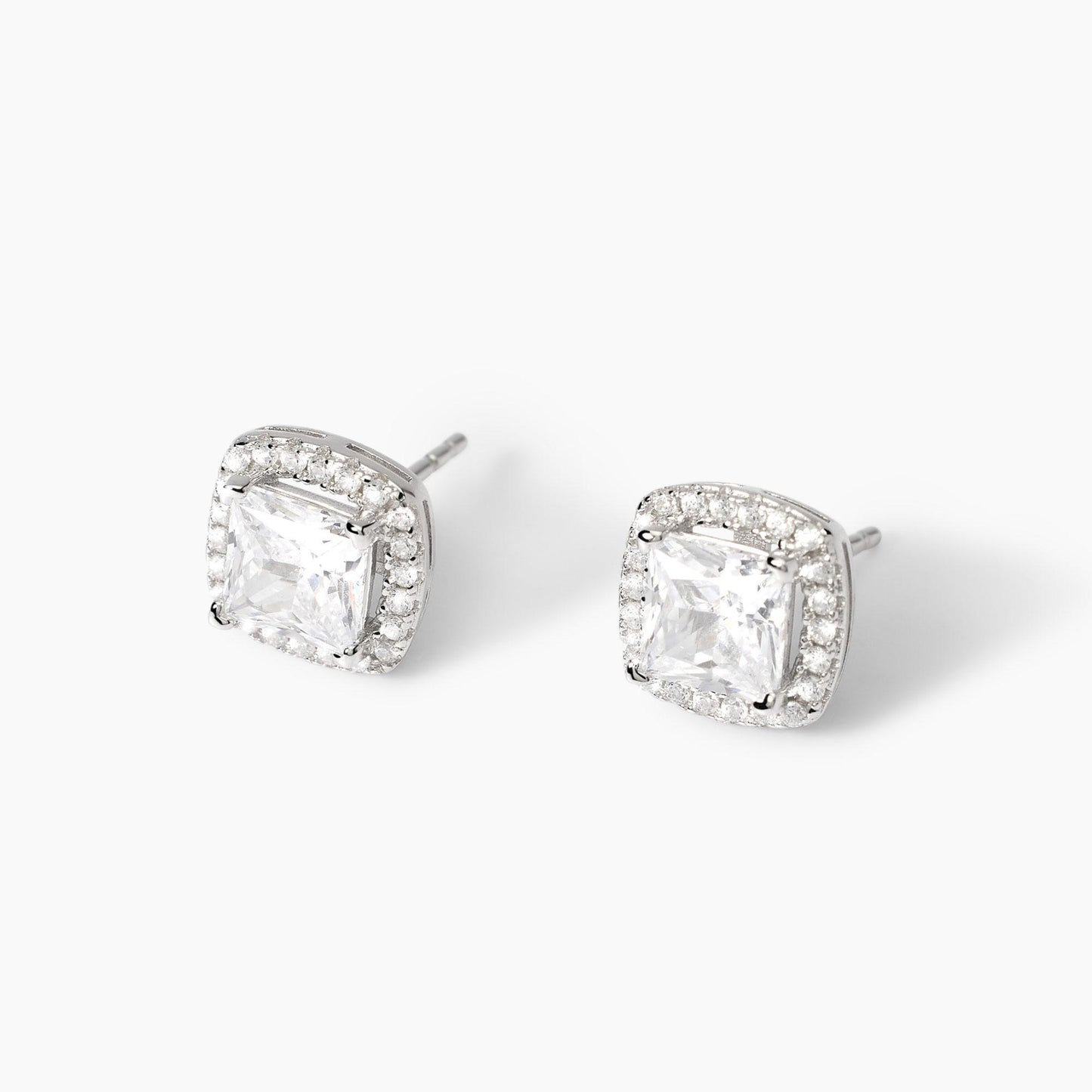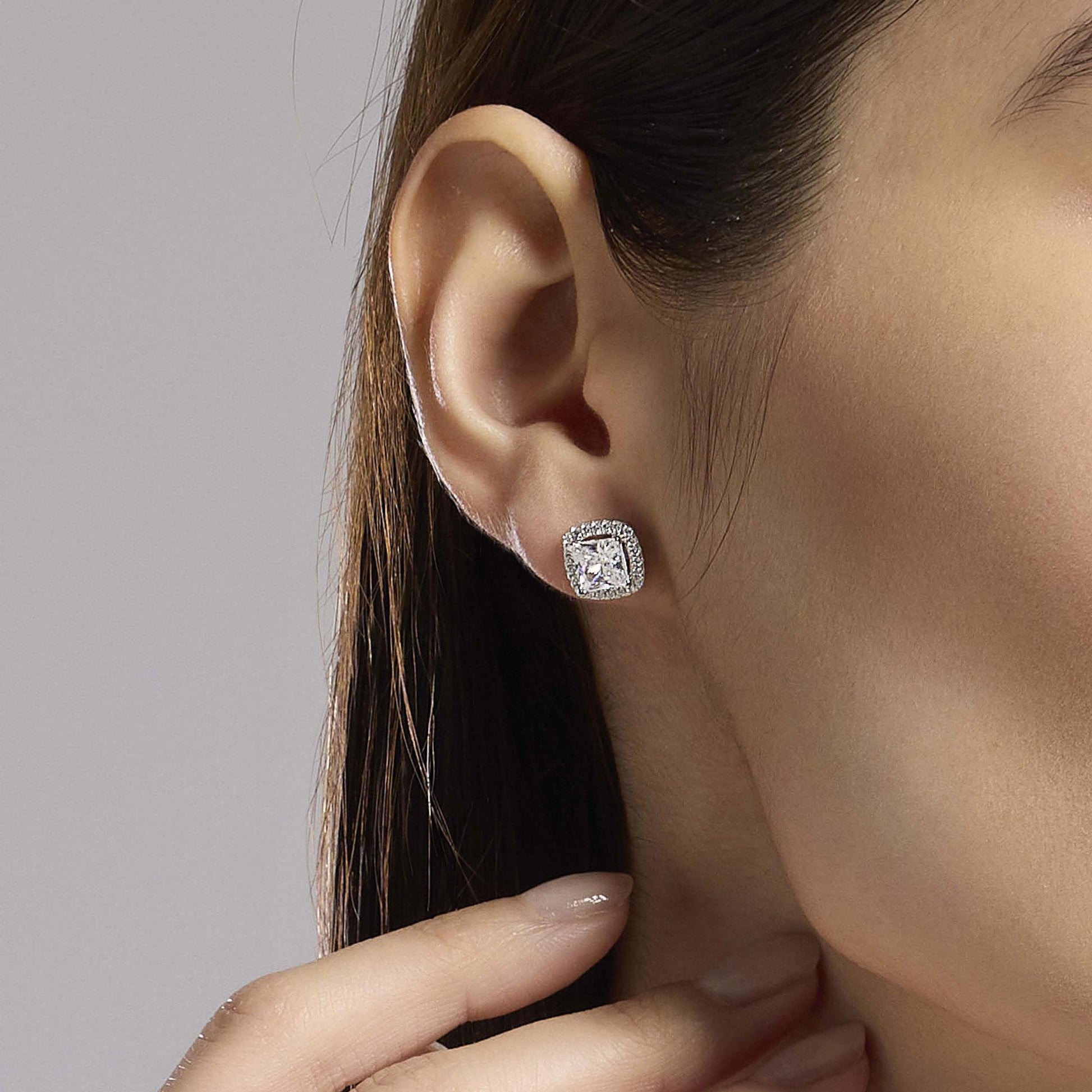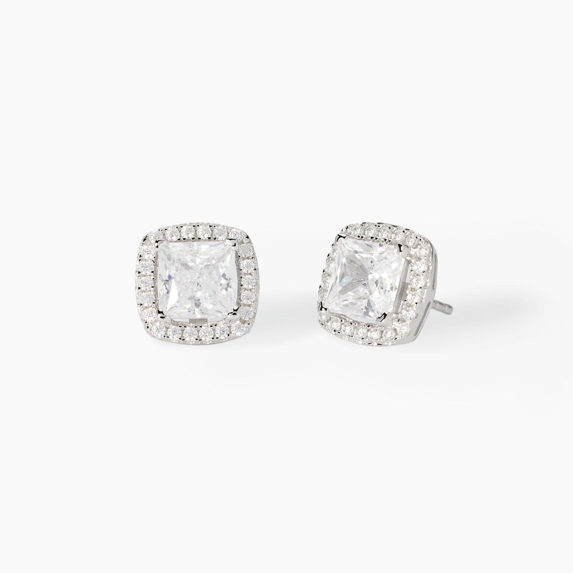 Orecchini a lobo in argento e zirconi bianchi taglio princess.