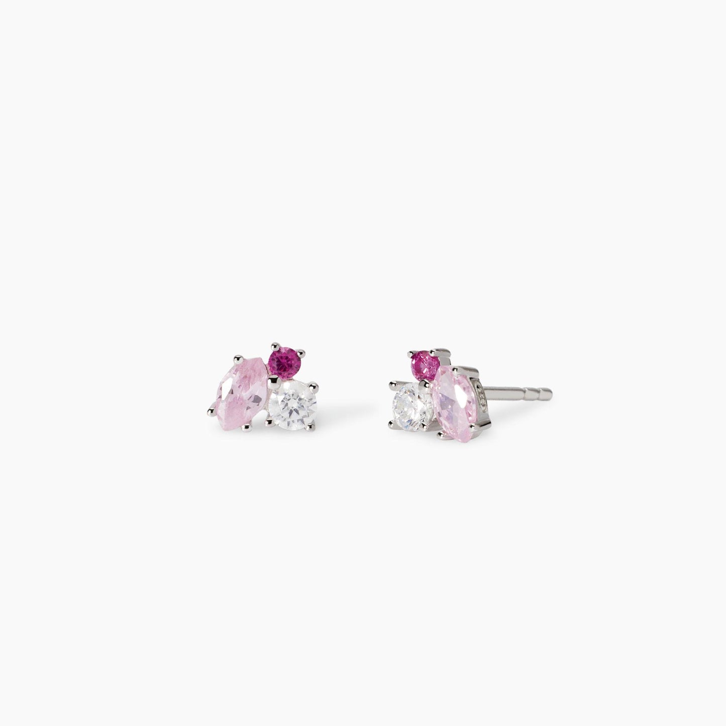 Orecchini a lobo multicolor con glass rosa forma navette, rubini sintetici e zirconi.