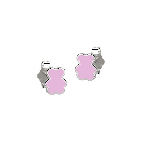Paio di orecchini a forma di orsetto, di colore lilac rose, con una bordatura in argento.