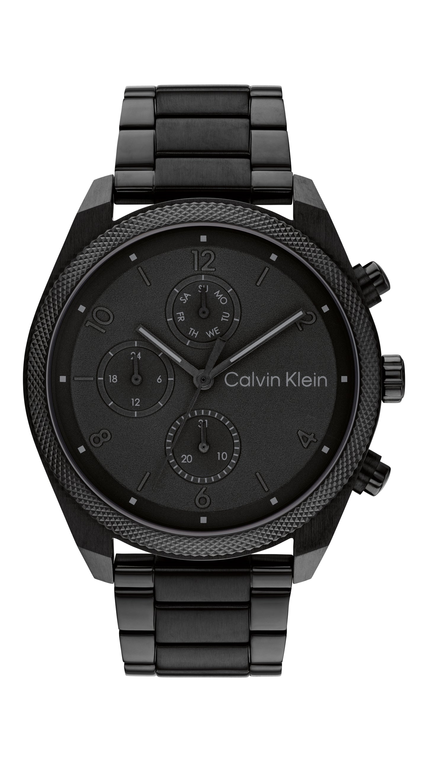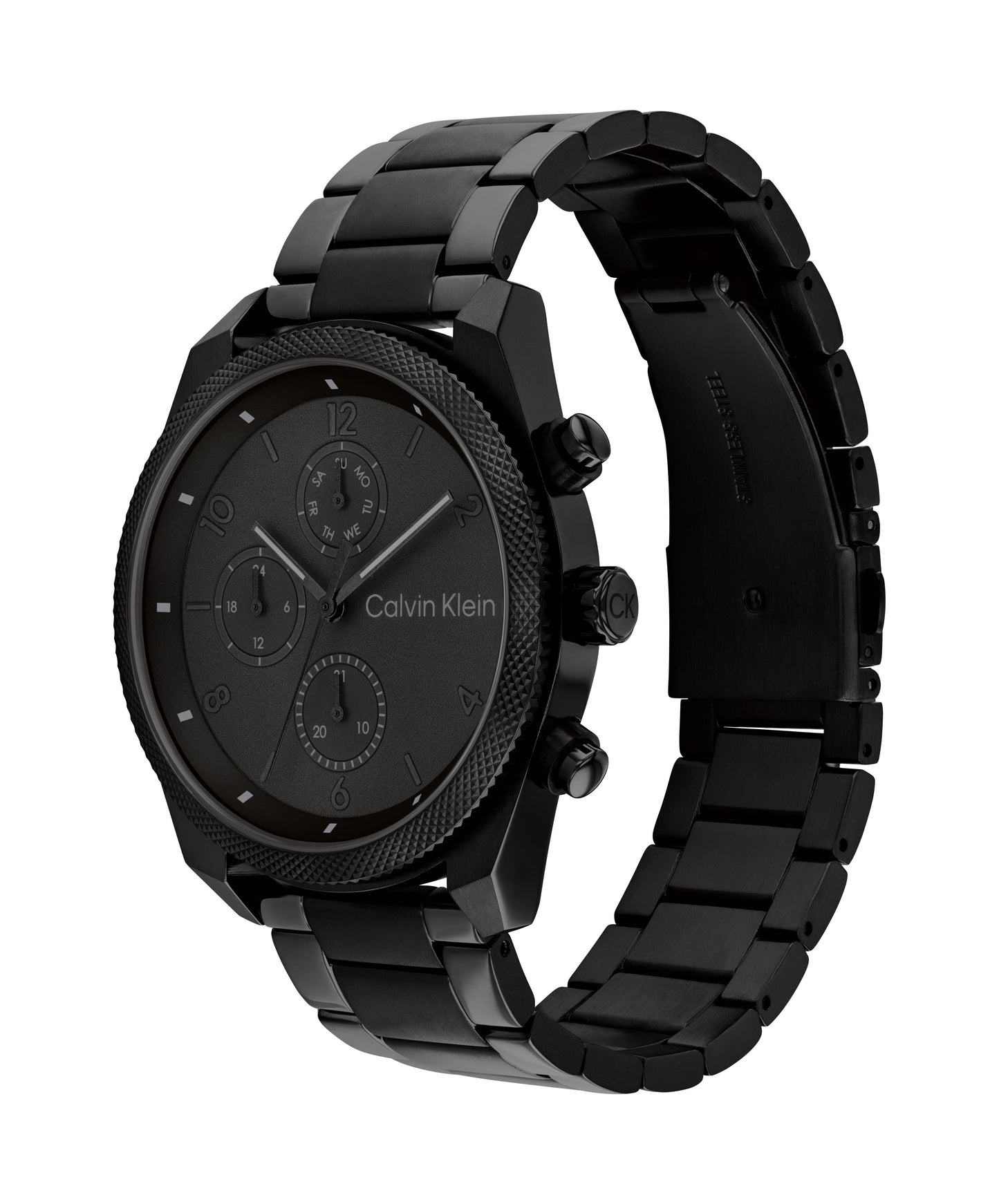 Orologio da uomo di Calvin Klein della collezione Architectural. Orologio multifunzione con resistenza all'acqua di 3 atm. La cassa, di forma tonda, è realizzata in acciaio inossidabile ed è di colore nero. Diametro cassa: 44 mm. Il quadrante è di colore nero. Il cinturino è realizzato in acciaio inossidabile ed è di colore nero.
