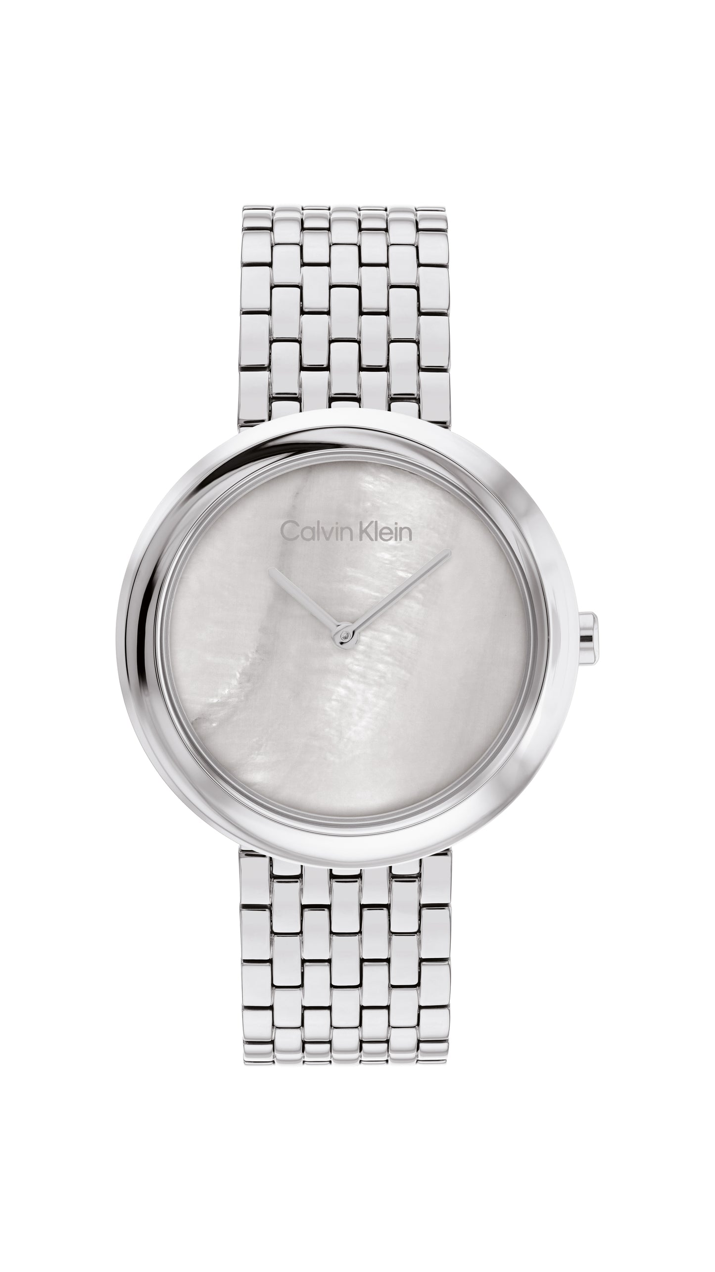 Orologio da donna di Calvin Klein della collezione Sculptural. Orologio solo tempo con movimento al quarzo 2 sfere e resistenza all'acqua di 3 atm. La cassa, di forma tonda, è realizzata in acciaio inossidabile ed è di colore grigio. Diametro cassa: 34 mm. Il quadrante è di colore grigio. Il cinturino è realizzato in acciaio inossidabile ed è di colore argento.