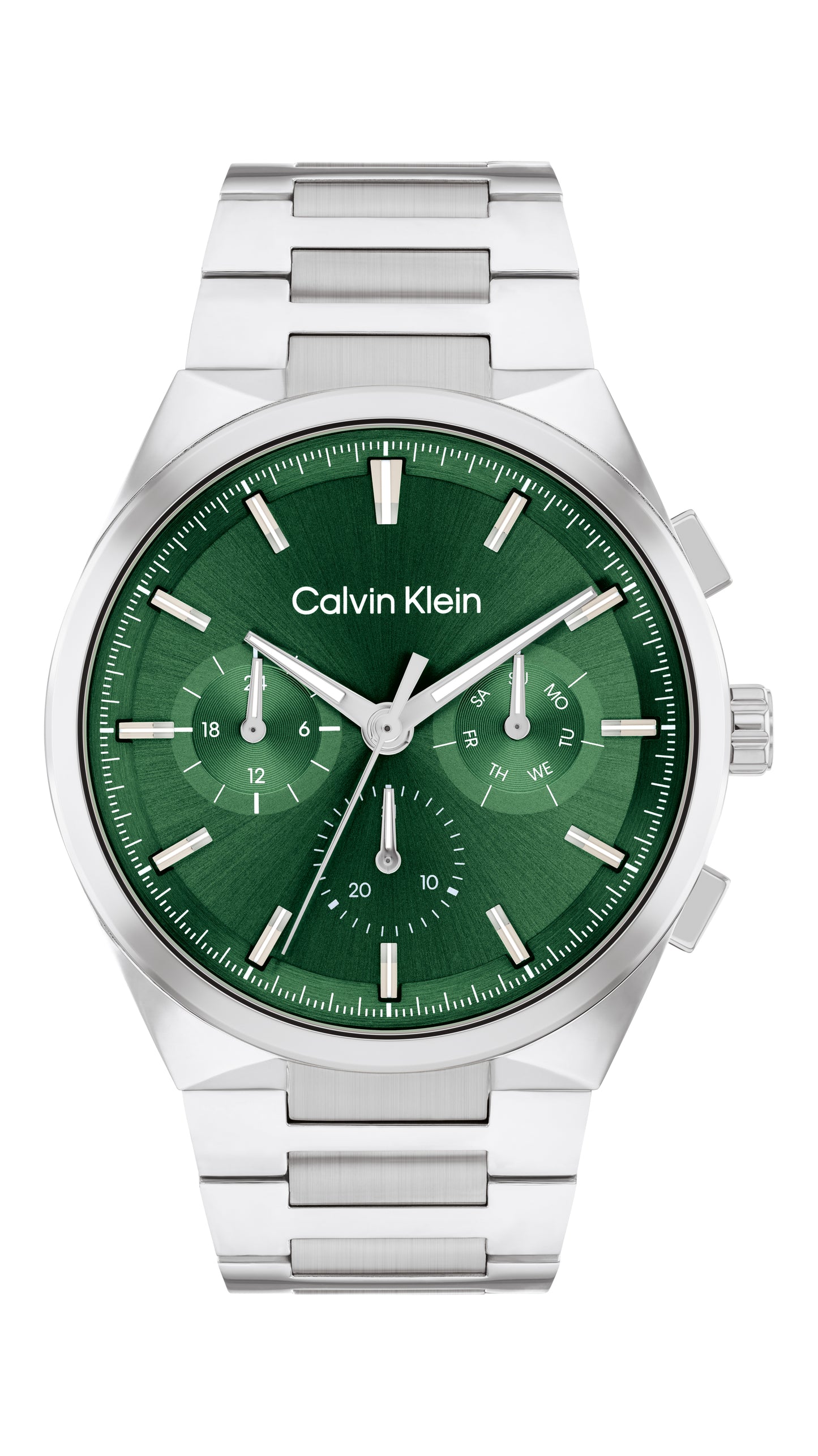 Orologio del brand Calvin Klein da uomo della collezione Distinguish. Diametro della cassa 44, resistenza all'acqua 3 ATM. Colore del quadrante Verde, colore della cassa Silver, materiale acciaio inossidabile , forma tonda . Bracciale di color argento in acciaio inossidabile.