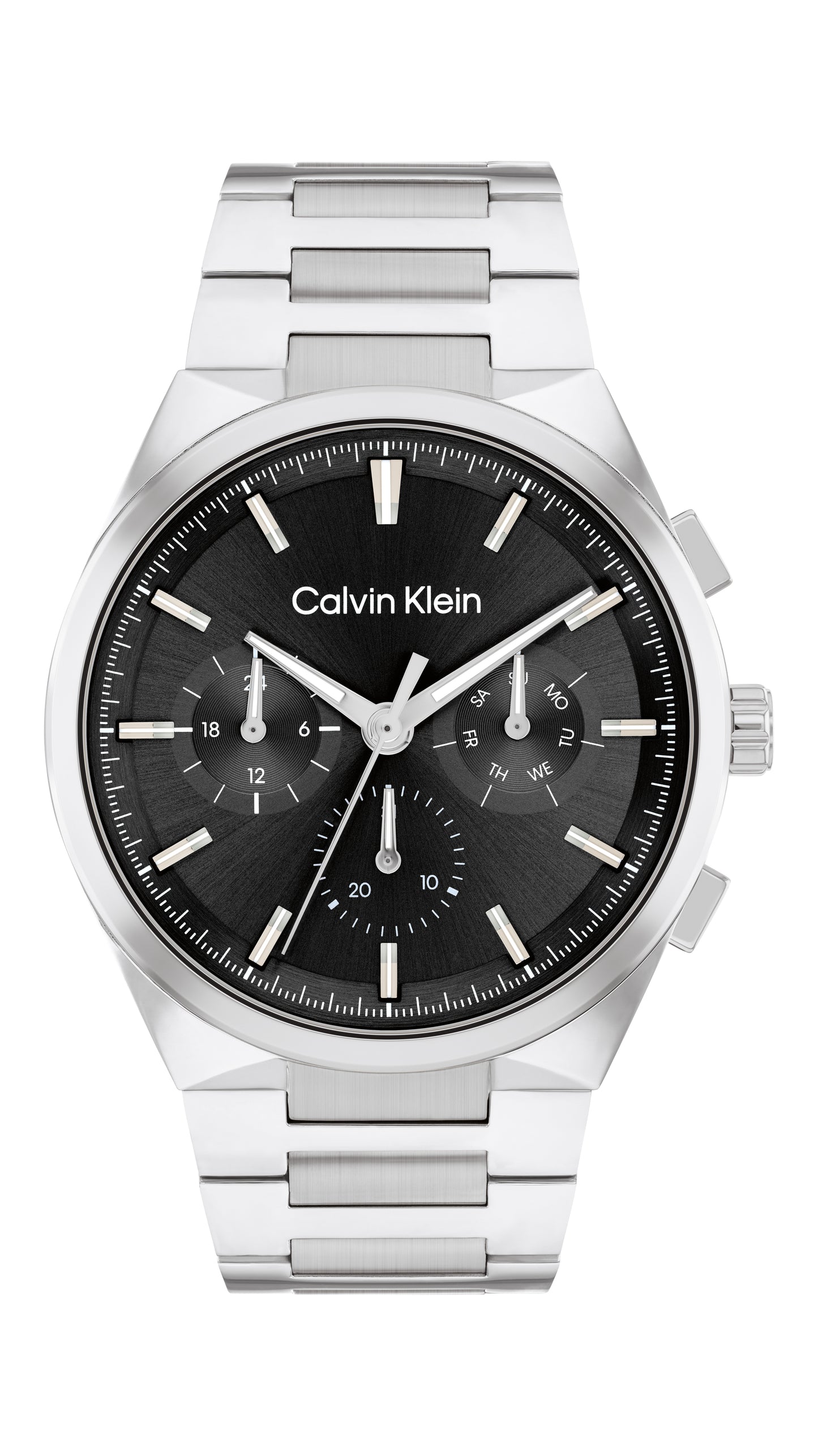 Orologio del brand Calvin Klein da uomo della collezione Distinguish. Diametro della cassa 44, resistenza all'acqua 3 ATM. Colore del quadrante Nero, colore della cassa Silver, materiale acciaio inossidabile , forma tonda . Bracciale di color argento in acciaio inossidabile.