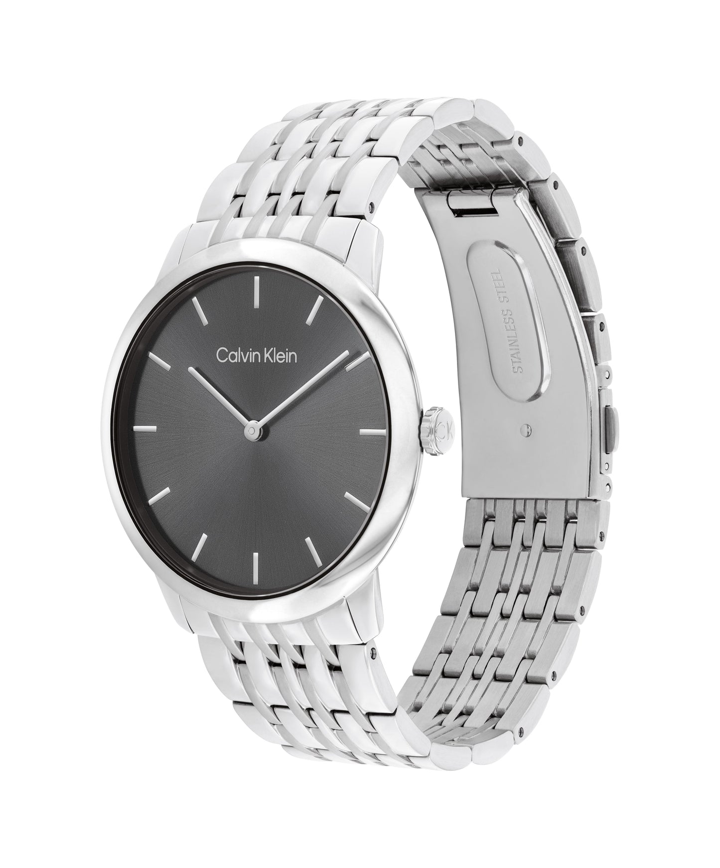 Orologio del brand Calvin Klein da Unisex della collezione Intrigue. Diametro della cassa 40, resistenza all'acqua 3 ATM. Colore del quadrante Grigio, colore della cassa Silver, materiale acciaio inossidabile , forma tonda . Bracciale di color argento in acciaio inossidabile.