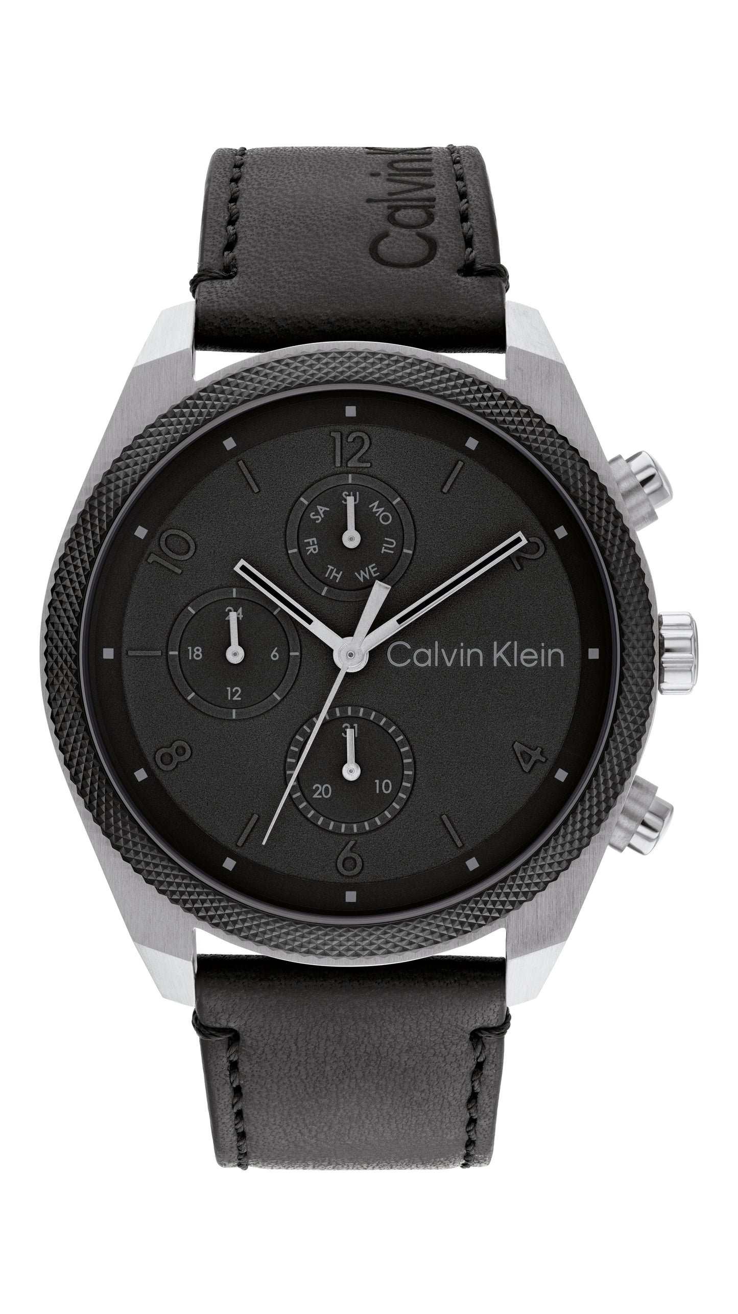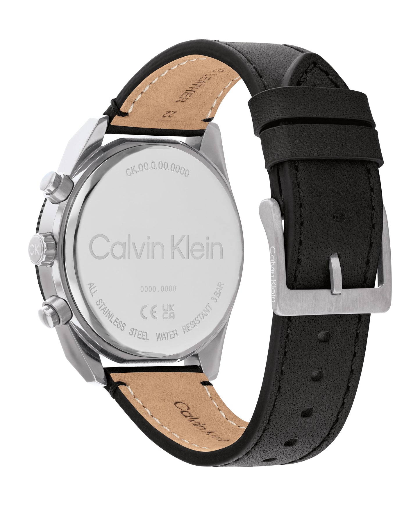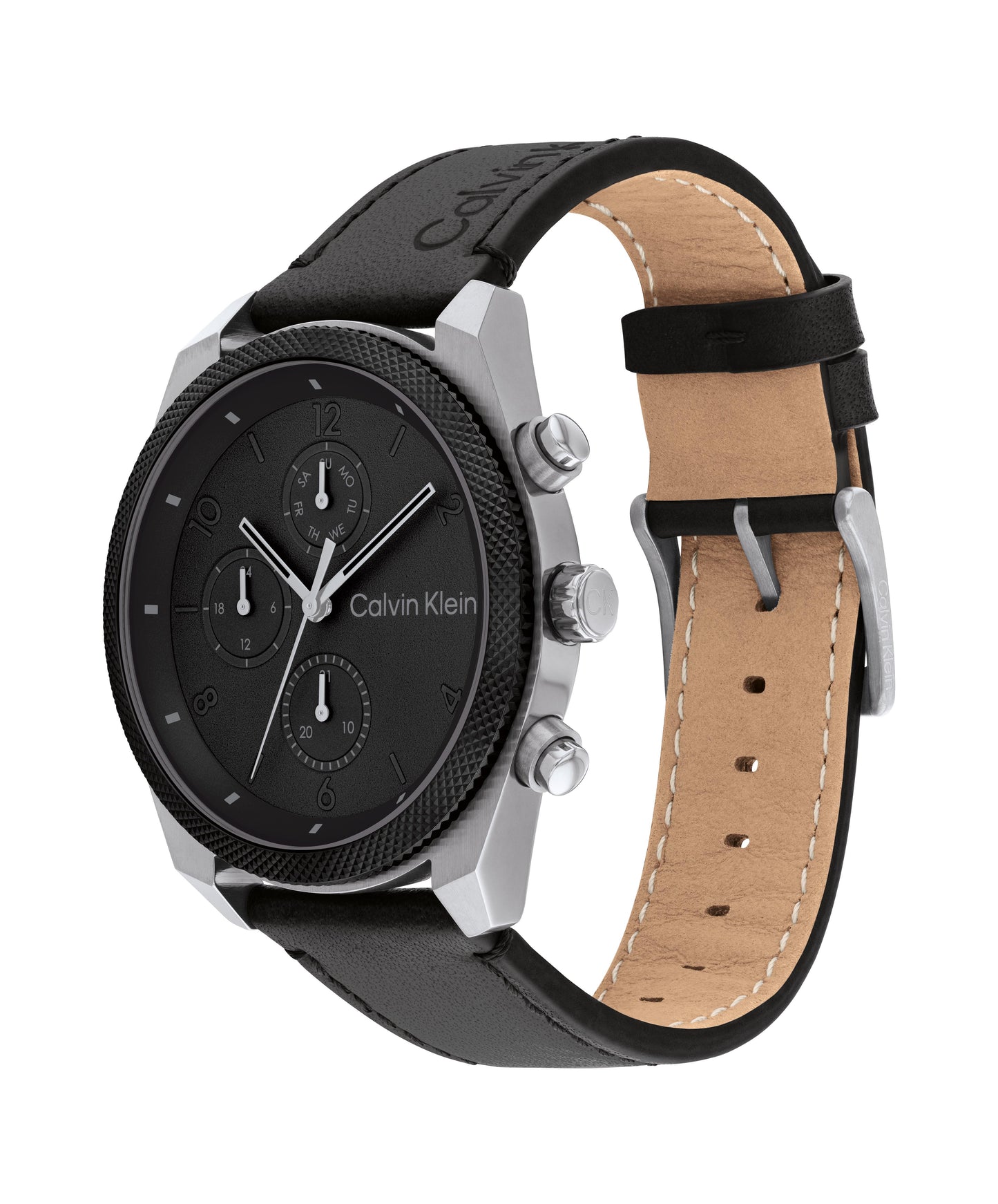 Orologio da uomo di Calvin Klein della collezione Architectural. Orologio multifunzione con resistenza all'acqua di 3 atm. La cassa, di forma tonda, è realizzata in acciaio inossidabile ed è di colore argento e nero. Diametro cassa: 44 mm. Il quadrante è di colore nero. Il cinturino è realizzato in pelle ed è di colore nero.