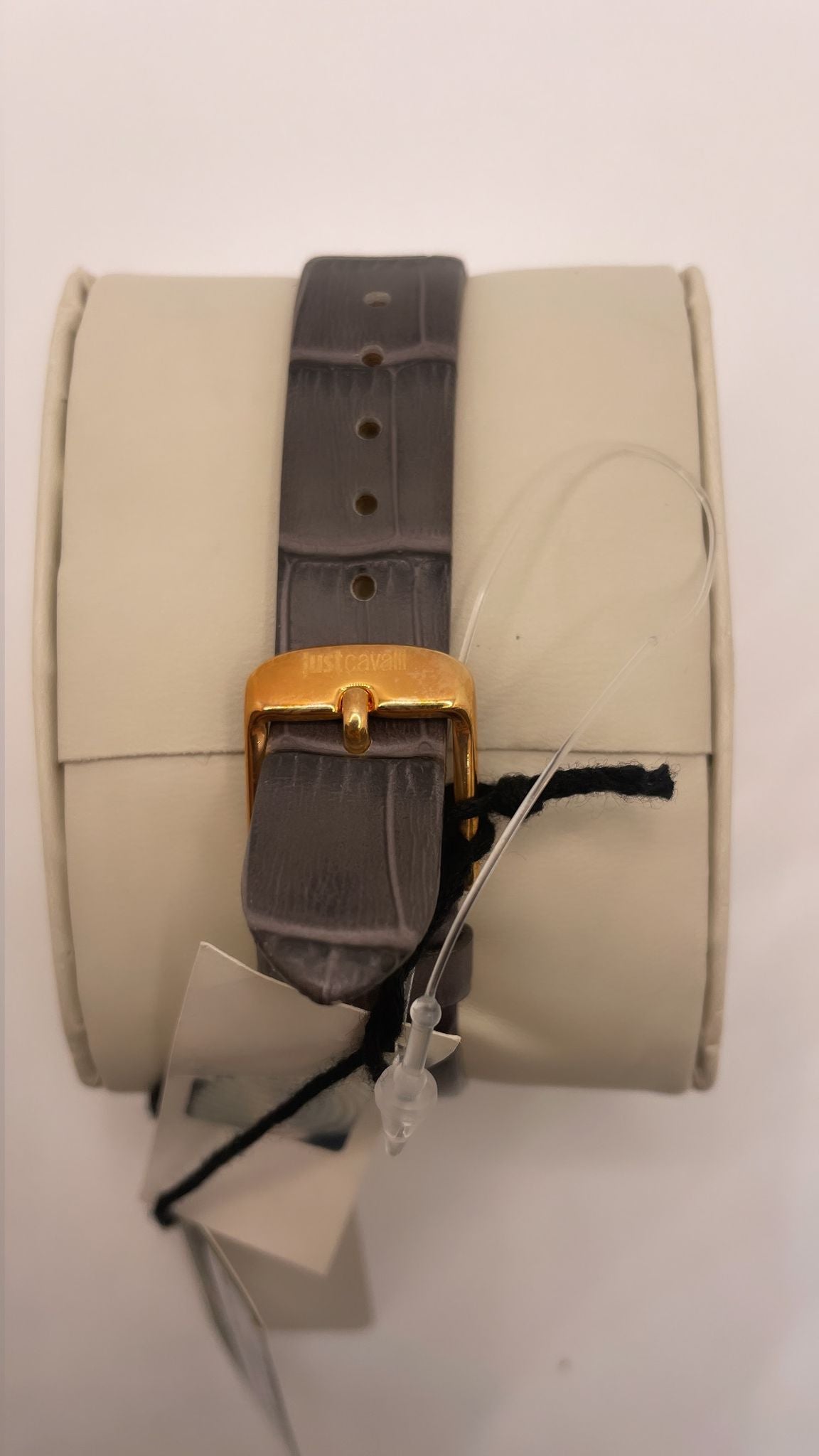 Cinturino grigio in pelle.