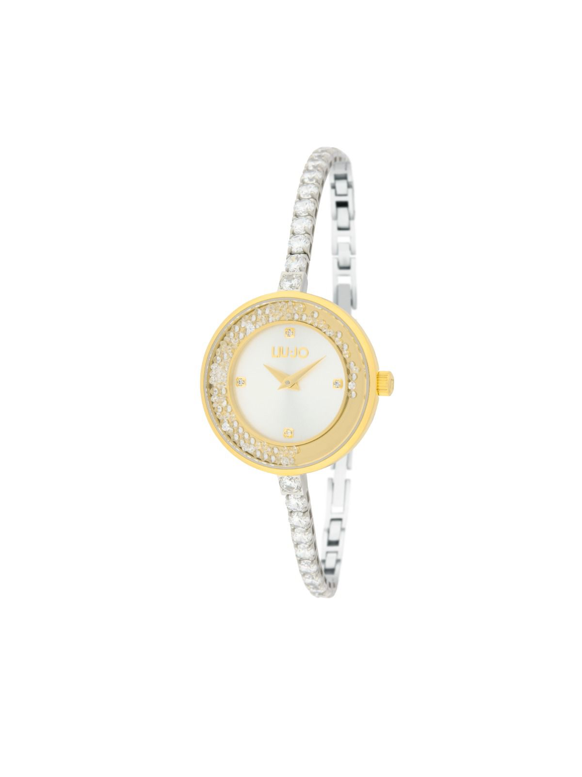 Orologio da donna di Liu-Jo della collezione Dancing Gala. La cassa è in acciaio di colore oro dal diametro 29 mm. Il vetro è minerale. Il colore del quadrante è argento con esclusivi cristalli mobili sulla lunetta. Il cinturino è in acciaio di colore argento . La resistenza all'acqua è di 3 ATM.