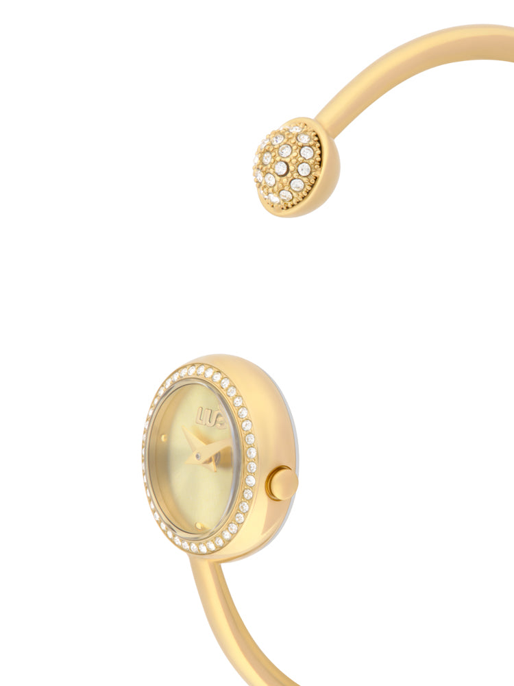 Orologio donna Liu Jo della collezione Fashion Dècor realizzato con cassa in acciaio color oro giallo impreziosita da cristalli bianchi con un diametro di 20 mm.