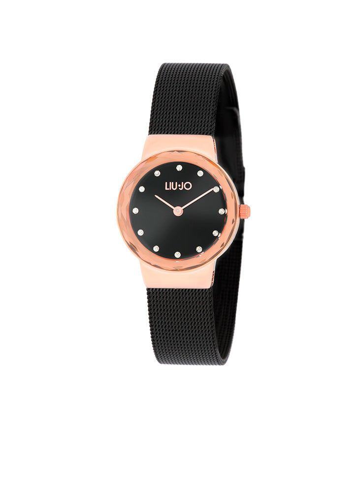 Orologio con quadrante di colore nero e cassa rosé. Misura della cassa: 26mm. Movimento al quarzo. Cinturino in acciaio nero inossidabile. La resistenza all'acqua è di 3 atmosfere.