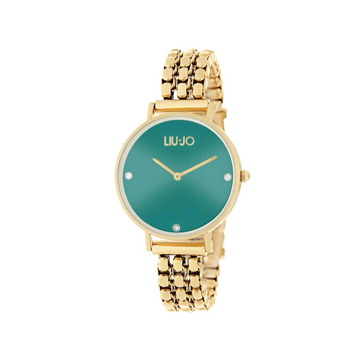 Orologio con resistenza all'acqua di 3 atm. La cassa è realizzata in acciaio inossidabile ed è di colore oro. Misura cassa: 32 mm. Il quadrante è di colore verde. L'orologio è caratterizzato dalla presenza di zirconi decorativi. Il cinturino è realizzato in acciaio inossidabile ed è di colore oro.