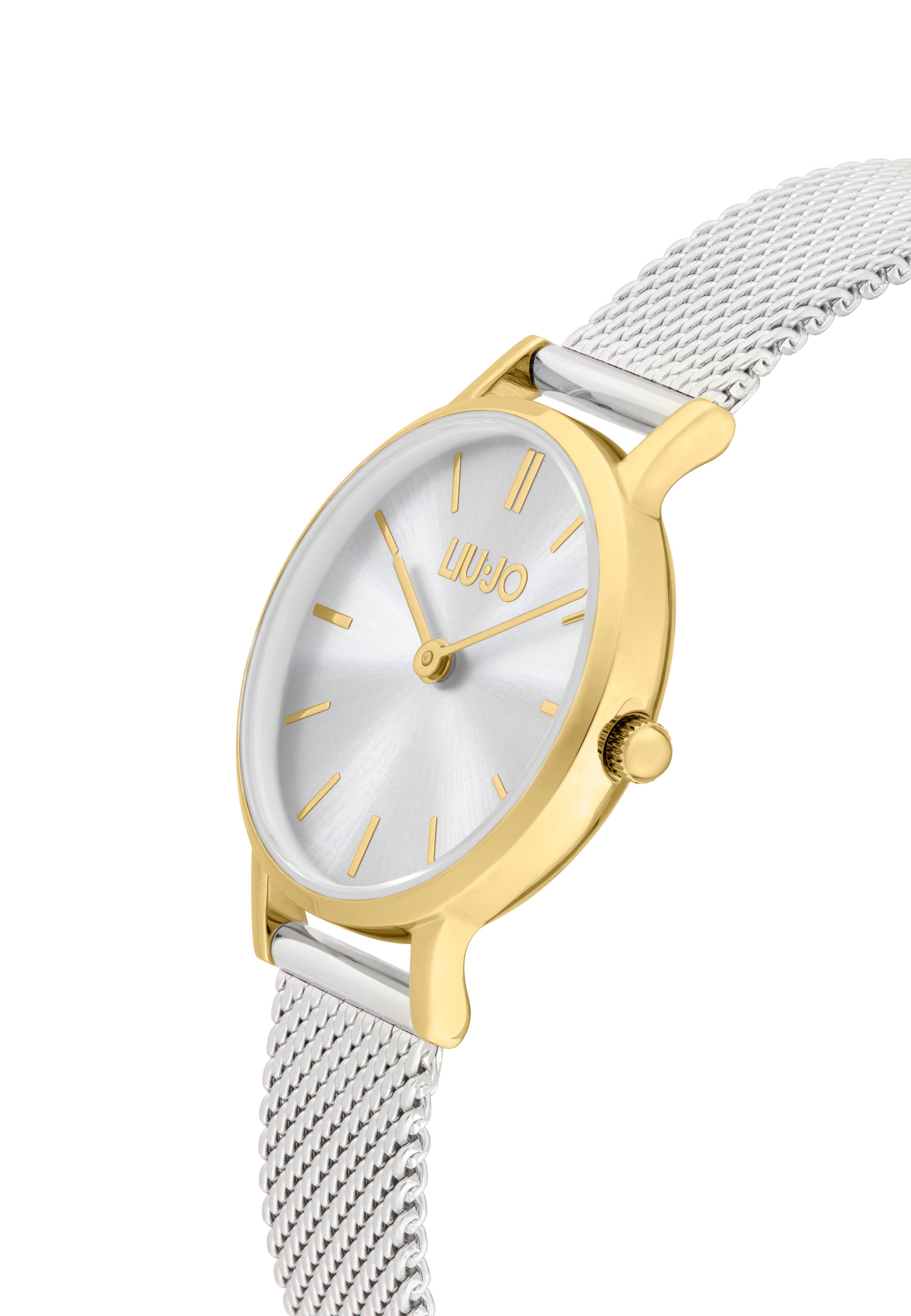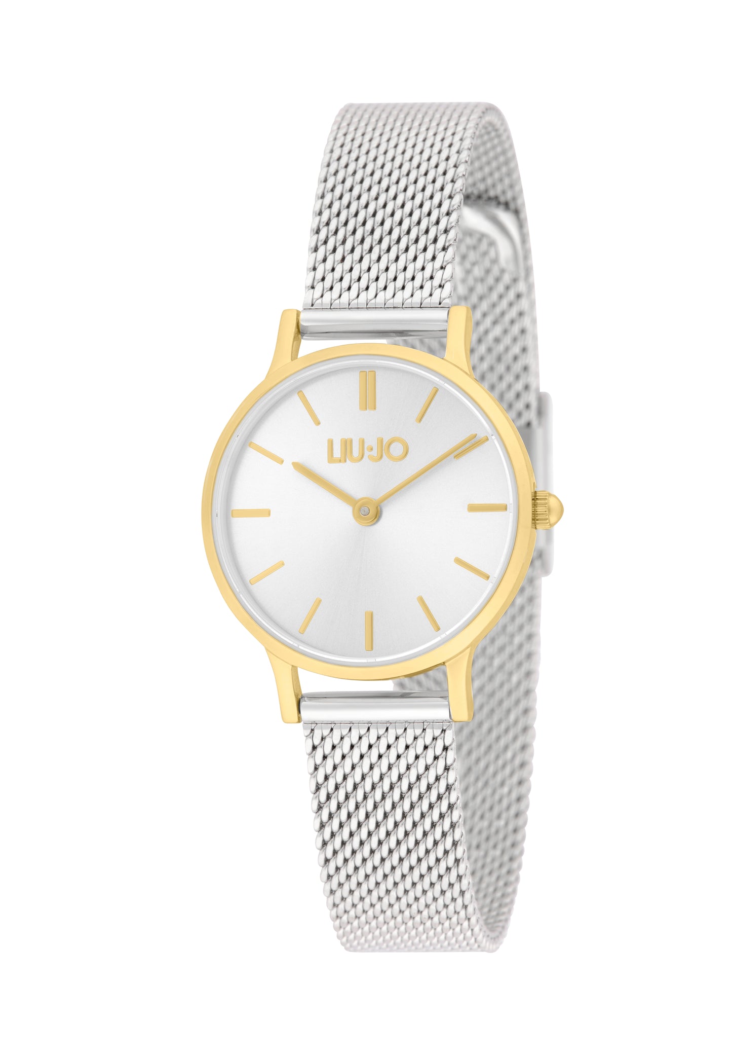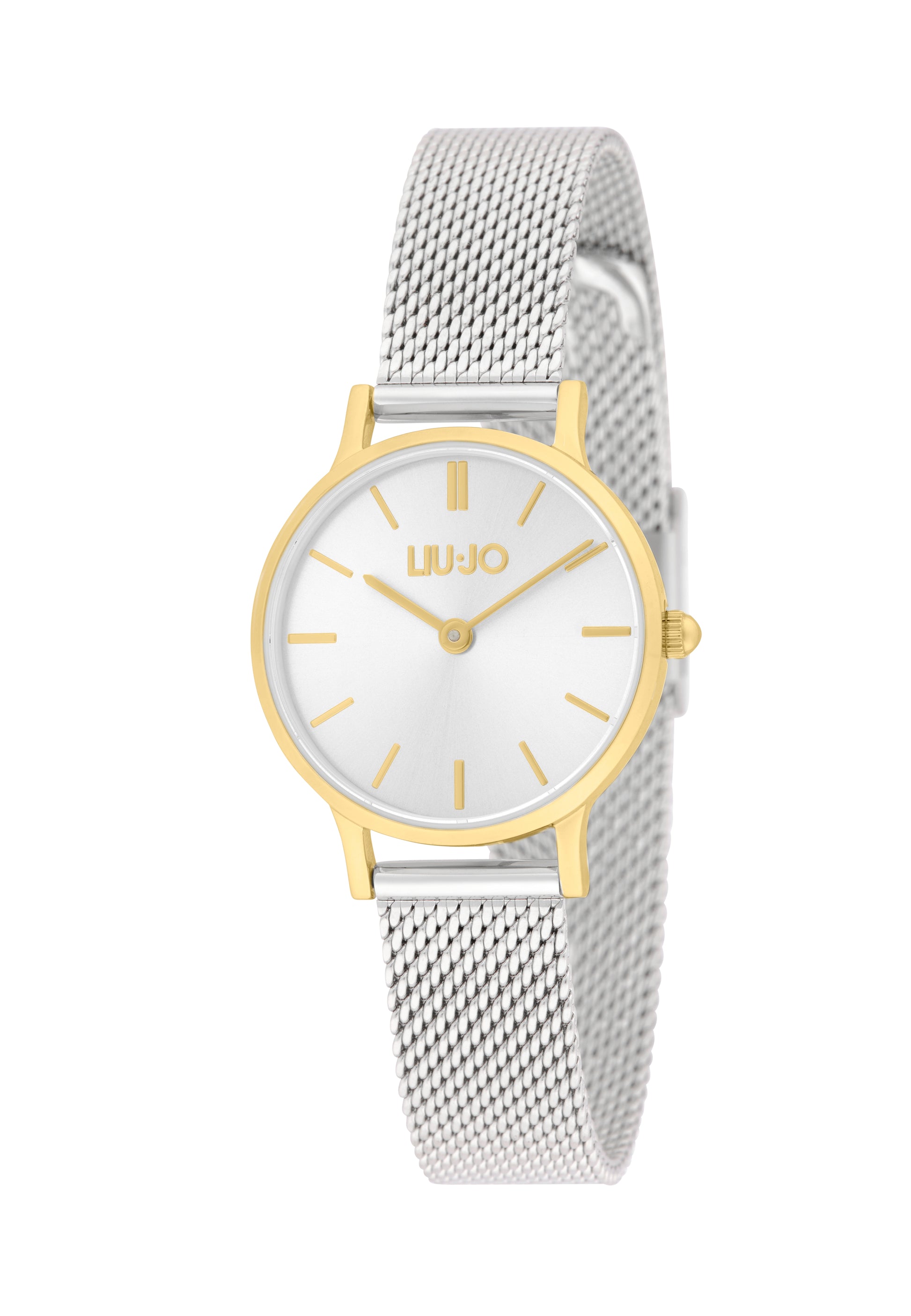 Orologio da donna di Liu-Jo della collezione Mini Moonlight. La cassa è in acciaio di colore gold dal diametro 26 mm. Il vetro è minerale. Il colore del quadrante è silver. Il cinturino è in acciaio di colore argento. La resistenza all'acqua è di 3 ATM.